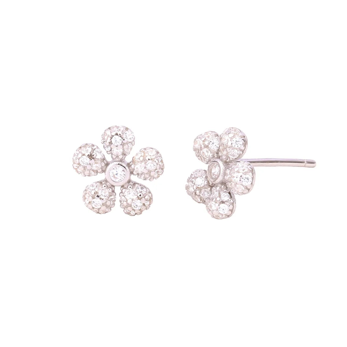 1 Pair Simple Style Flower Plating Inlay Sterling Silver Zircon White Gold Plated Ear Studs