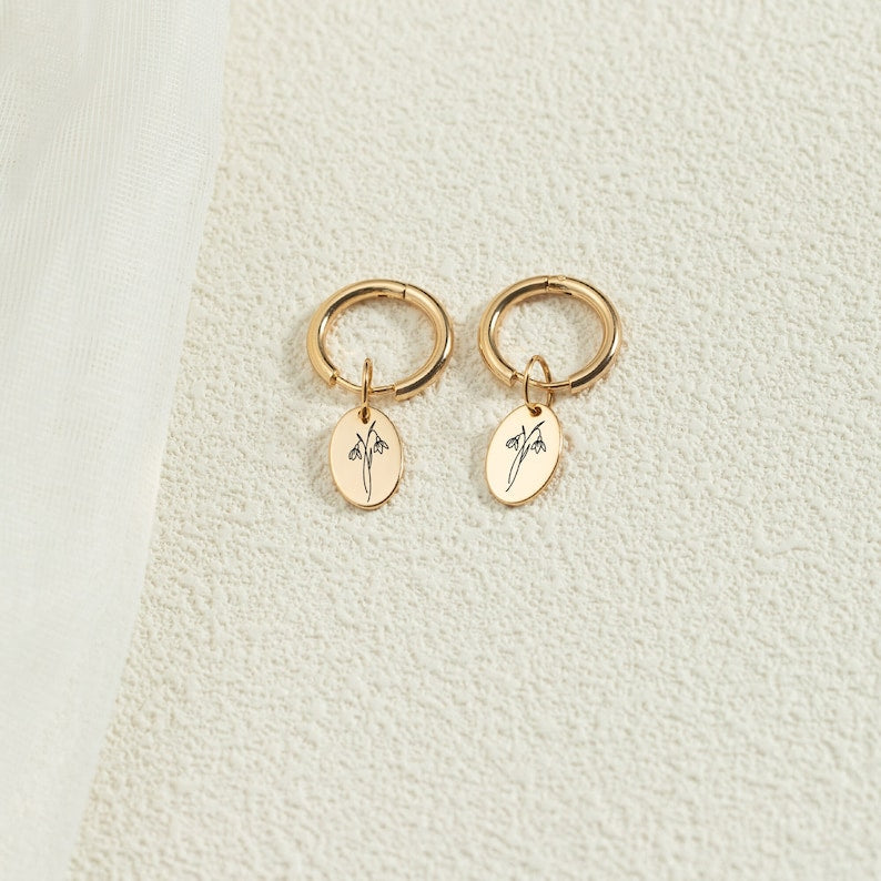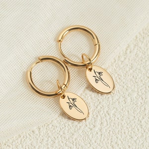 Birth Flower Earrings,Birth Month Flower Earrings,Custom Floral Signet Earrings,Personalized Jewelry,Bridesmaid Gift,Birthday Gift for Mom