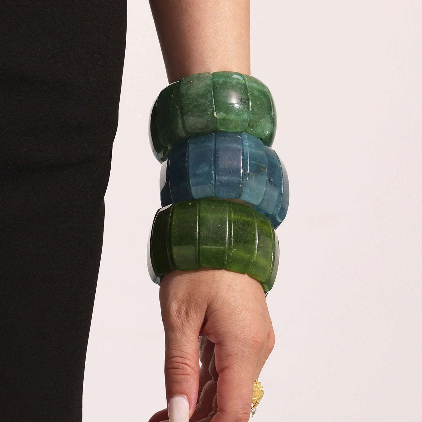 Wholesale Electroplated Stainless Steel Geometric Ferris Wheel Wide Elastic Unisex Bracelet
