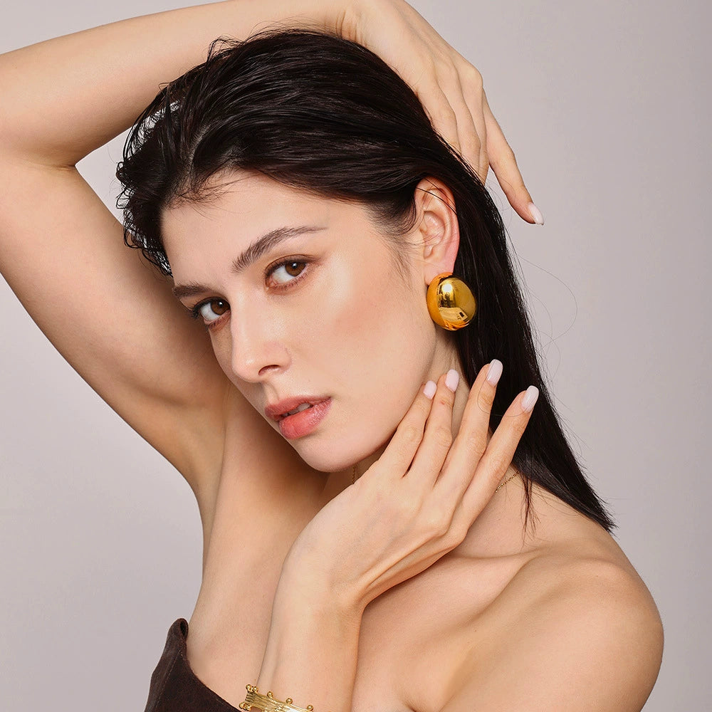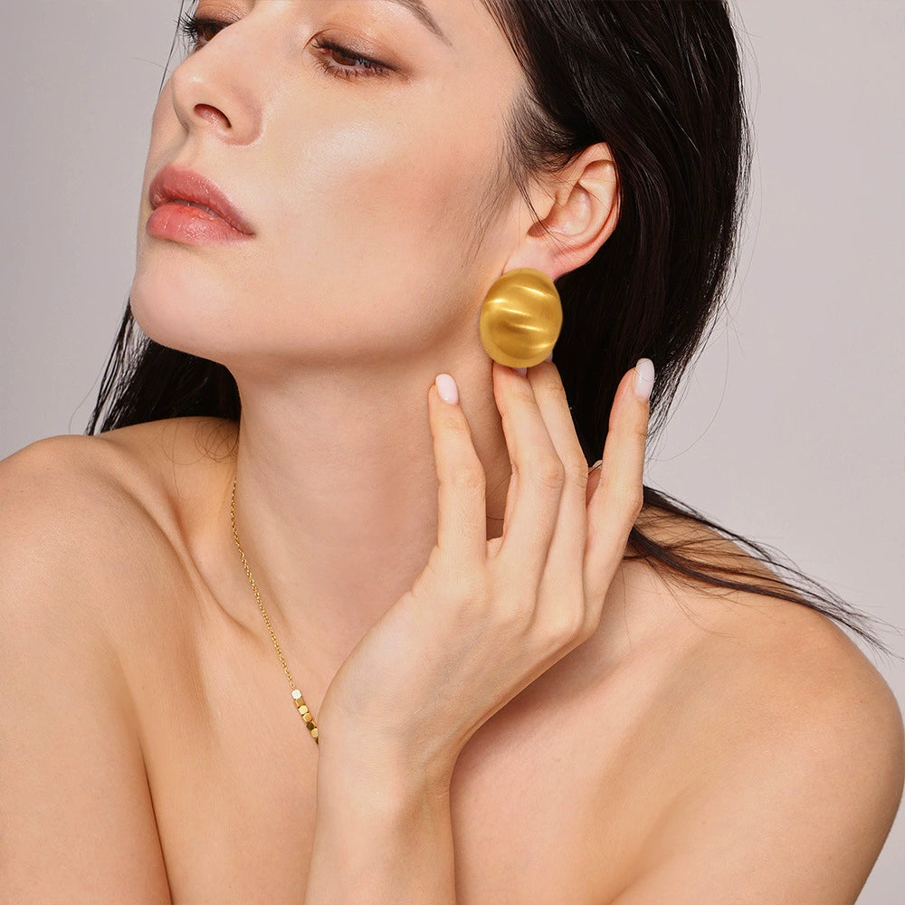Wholesale Exaggerated Frosted Glossy Geometric Oval Titanium Steel Electroplated Earrings For Women
