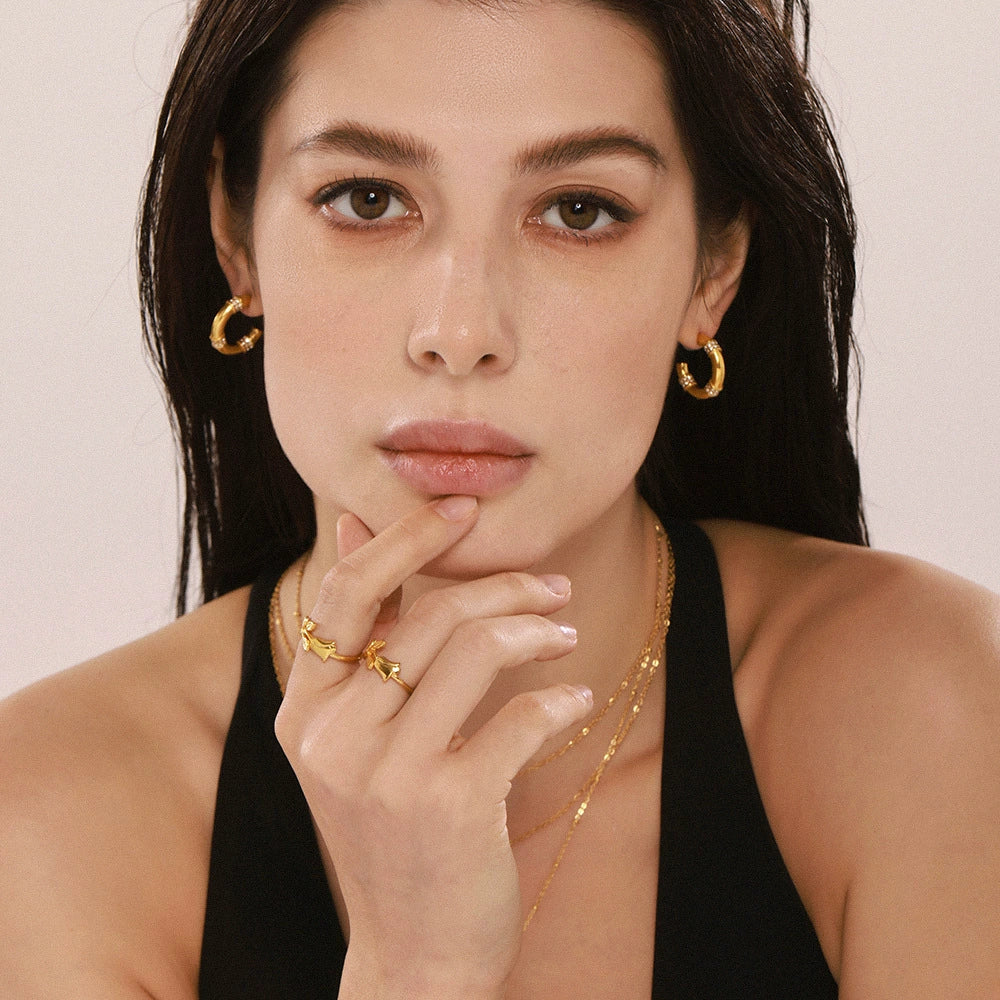 Wholesale Geometric Ferris Wheel And Tulip Ring Titanium Steel Electroplated Unisex Light Luxury Style