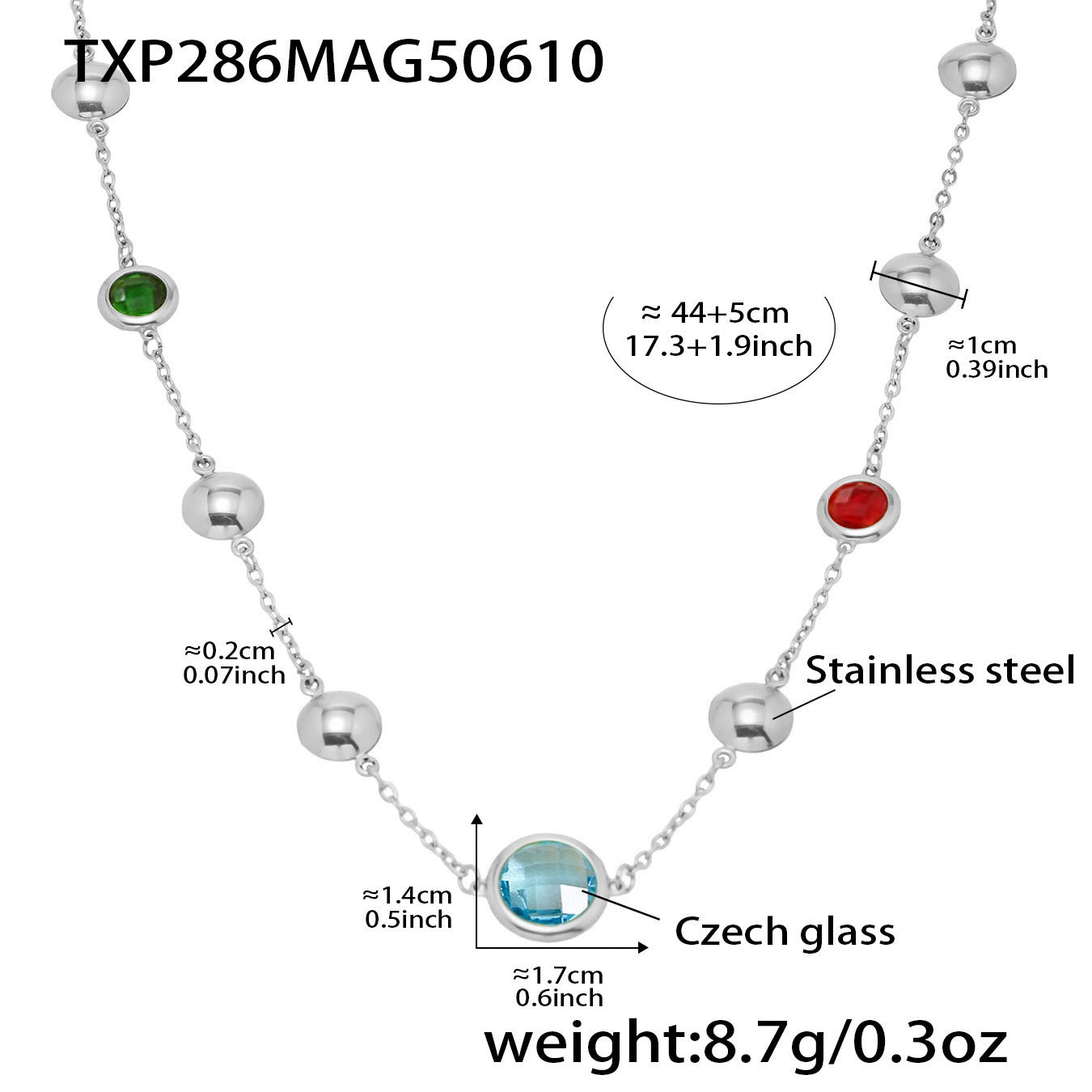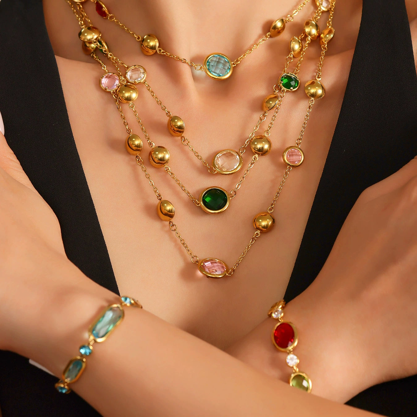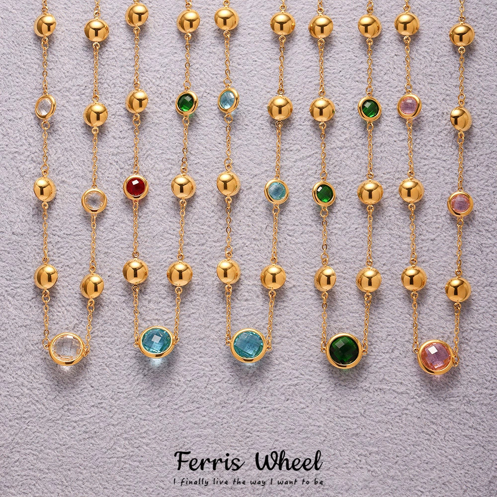 Wholesale Geometric Hollow Circle Splicing Ferris Wheel Design Stainless Steel And Glass Stone Necklace For Women With Electroplating