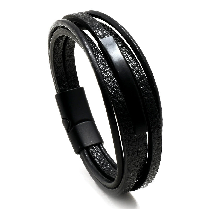 Wholesale Men's Stainless Steel Leather Rope Bracelet Retro Geometric Handmade