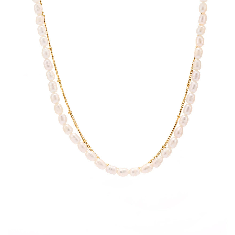 Wholesale Unisex Geometric Stainless Steel And Freshwater Pearl Electroplated Doublelayer Necklace