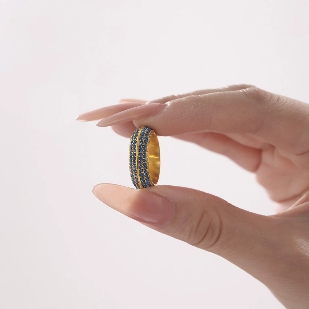 Wholesale Unisex Geometric Titanium Steel Electroplated Ferris Wheel Full Diamond Inlaid 5A Zircon Ring