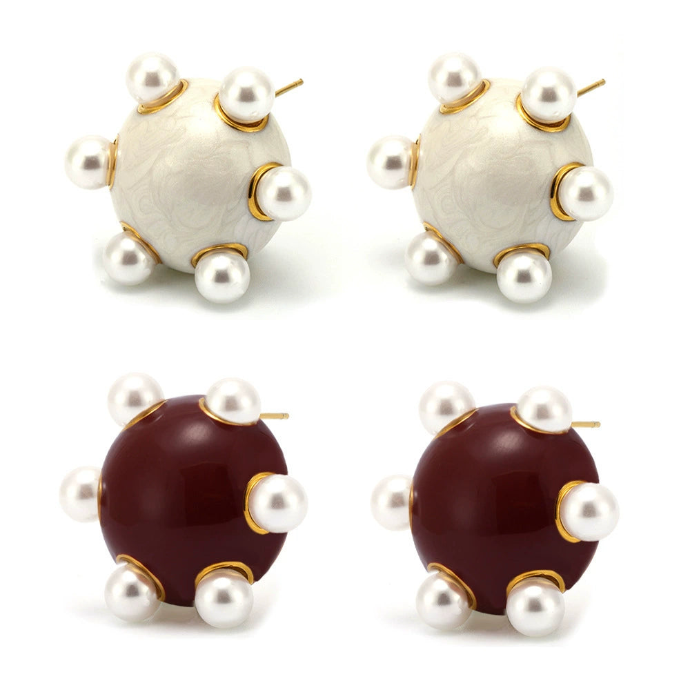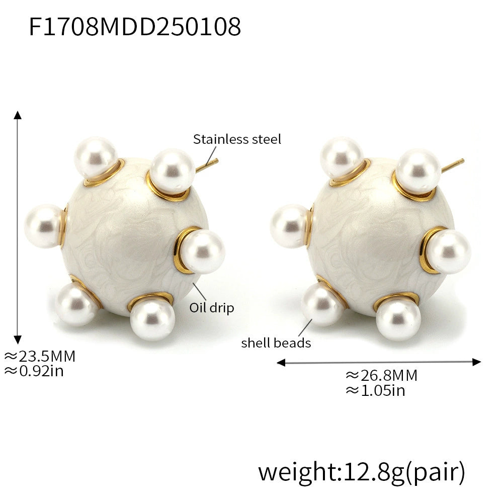 Wholesale Women's Fashion Geometric U Shape Titanium Steel Electroplated Pearl Earrings