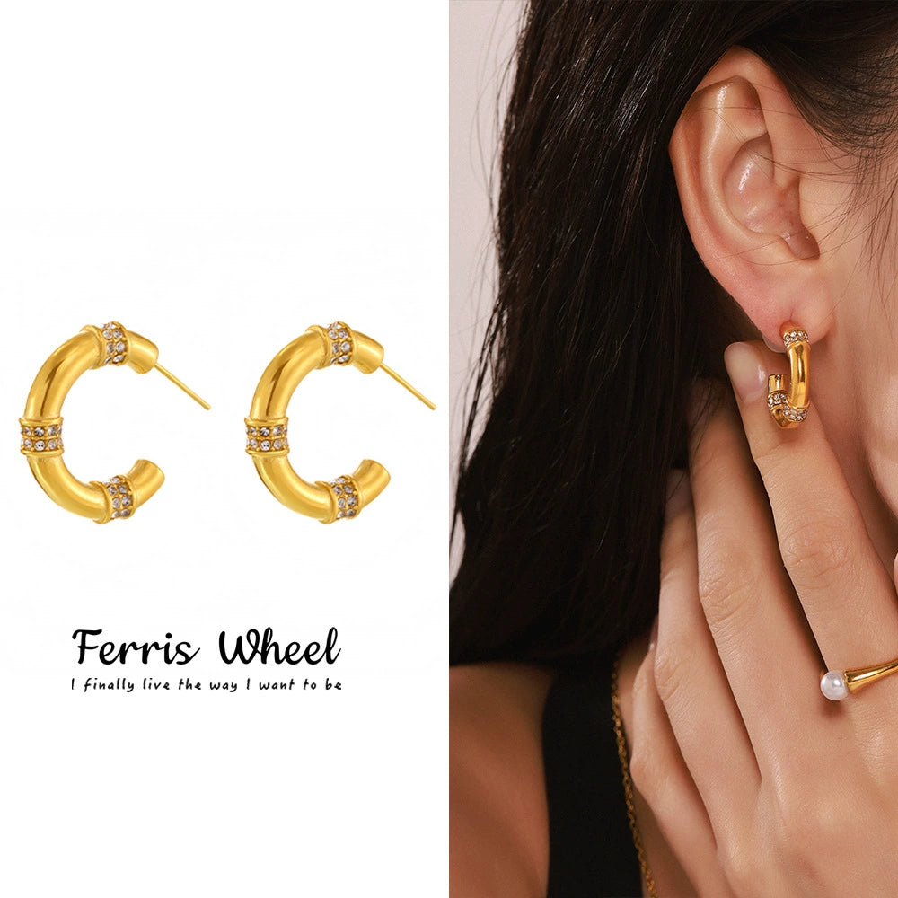 Wholesale Women's Geometric And Ushaped Stainless Steel Electroplated Ferris Wheel Cshaped Diamond Earrings