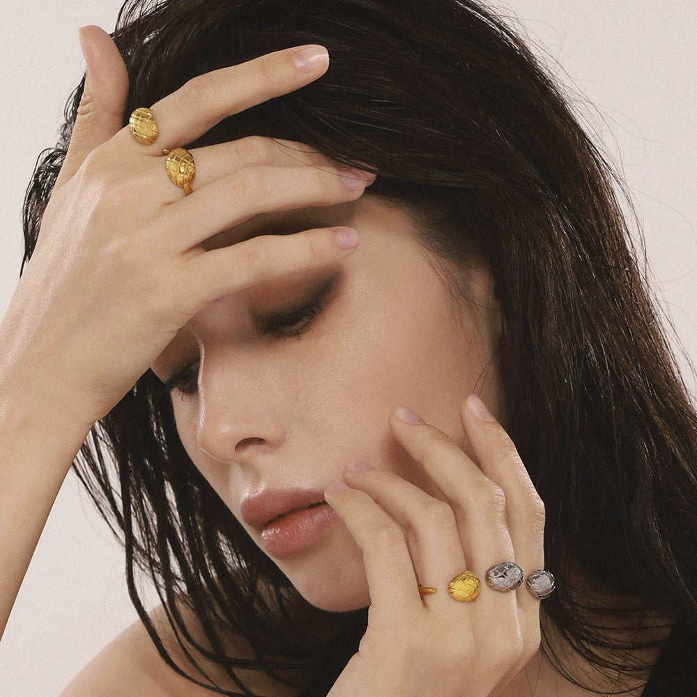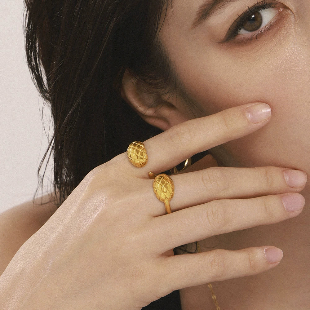 Wholesale Women's Geometric Check Open Ring Stainless Steel 18K Gold Electroplated