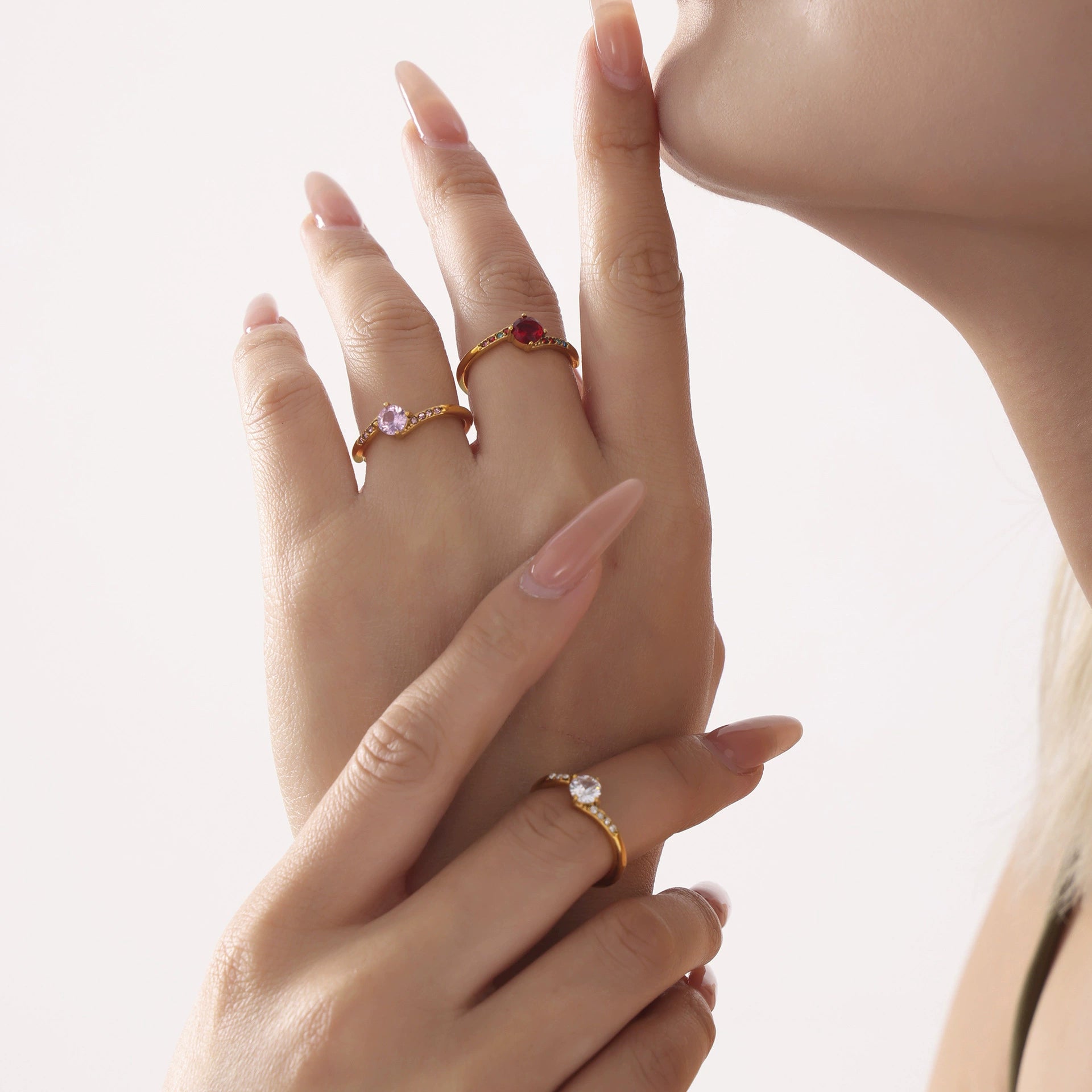 Wholesale Women's Light Luxury Geometric Ferris Wheel Ring Inlaid With Natural Pink Heart Zircon 18K Gold Plated Titanium Steel