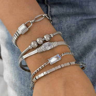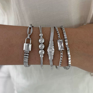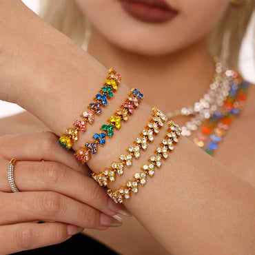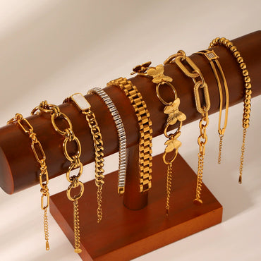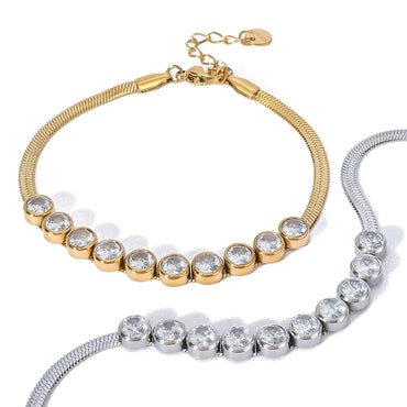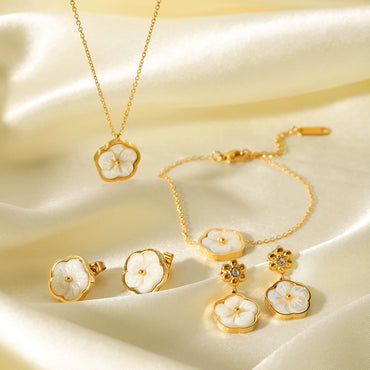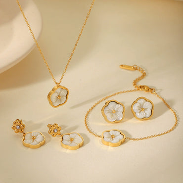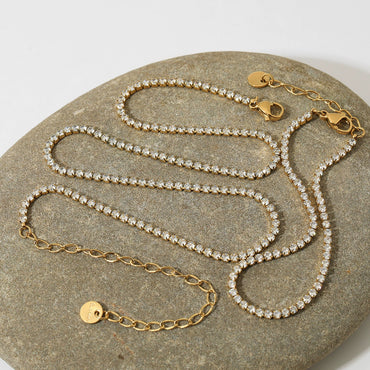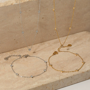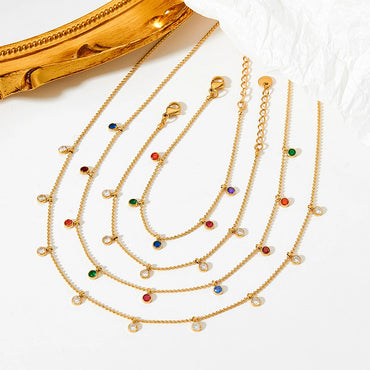 Wholesale Women Sexy Tassel Stainless Steel Titanium Steel Jewelry Set With Love Water Drops Bell Pattern Electroplated Ball Chain Zircon Set Necklace Bracelet Anklet