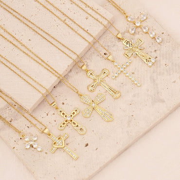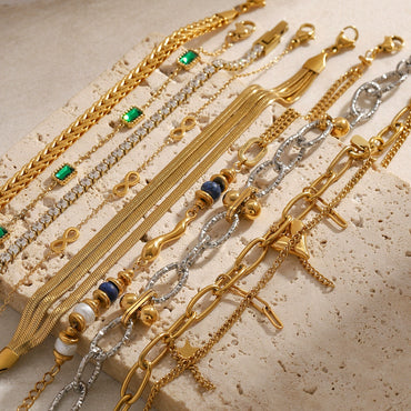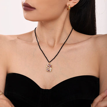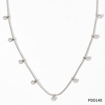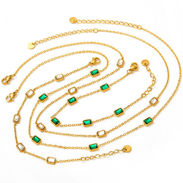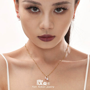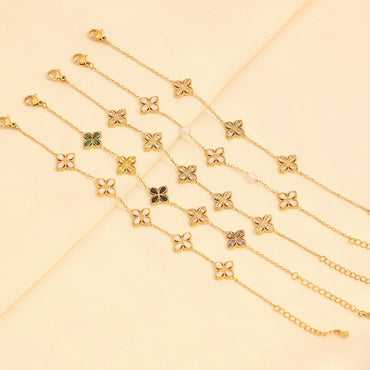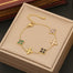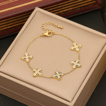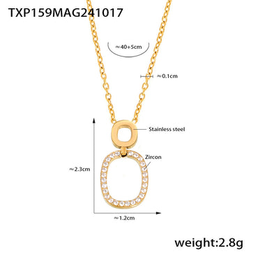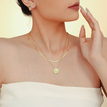 Wholesale Titanium Steel Doublelayer Clavicle Necklace For Women With Microinlaid Zircon Geometric Letter Number And Text Pattern Electroplated Fourleaf Flower Design
