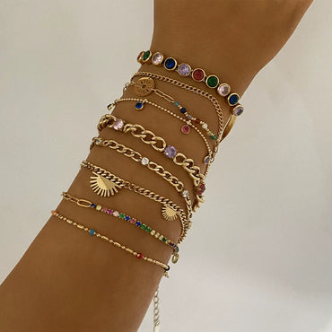 Wholesale Retro Style Stainless Steel And Titanium Steel Jewelry Set With Colorful Zircon Beads And Electroplating Patterned With Stars Sun And Moon Clouds Universe
