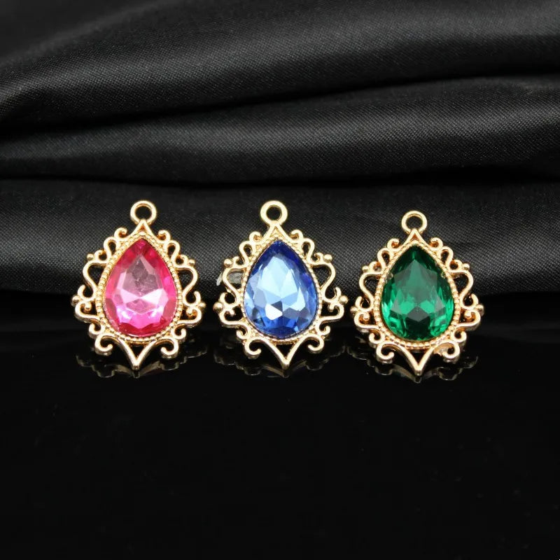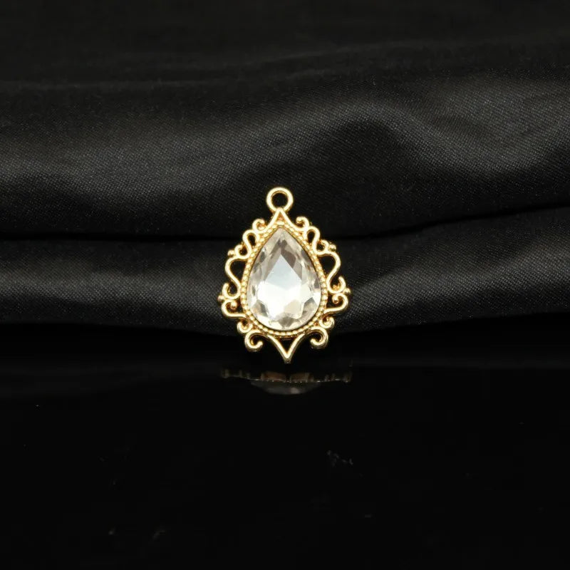 10 PCS/Package 19 * 25mm Zinc Alloy Rhinestones Water Droplets Polished Pendant