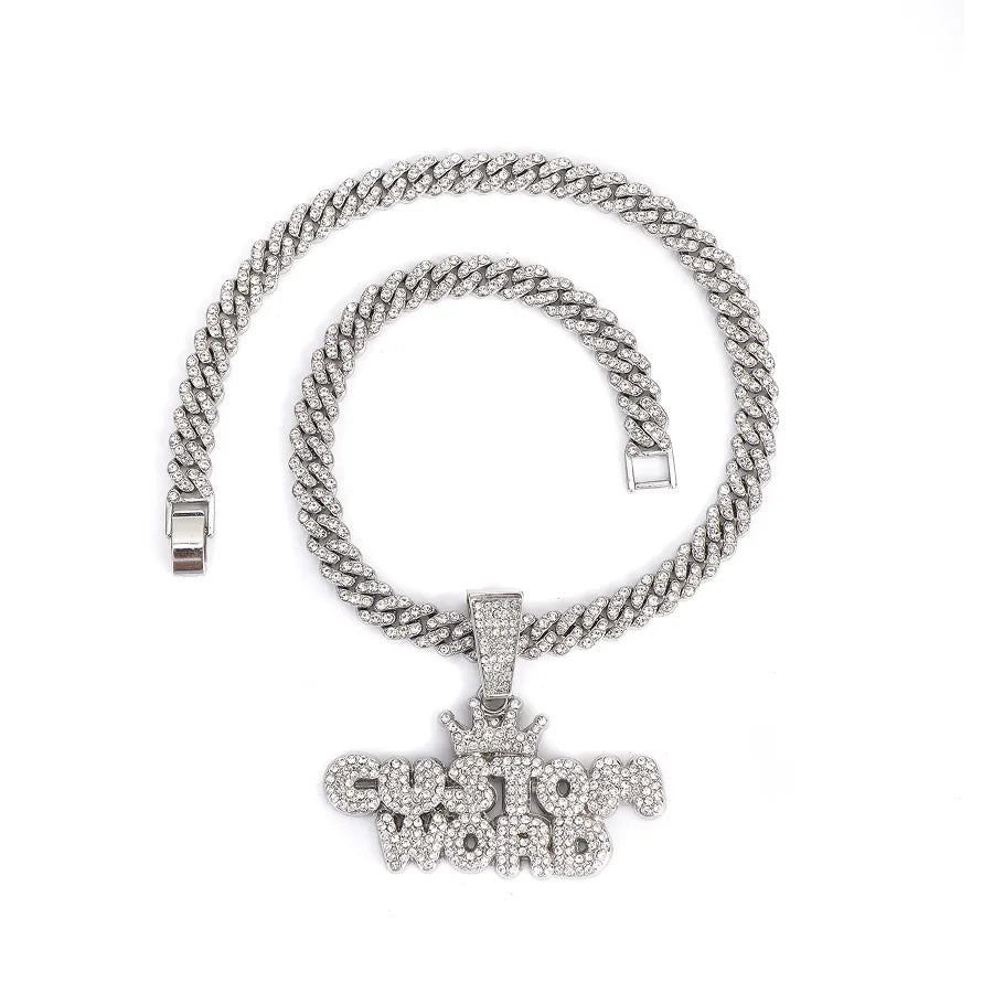 1PC Custom Design Letter Pendant Rapper Necklace Iced Out Silver Full Diamond Custom Word Charm Jewelry Gold Plated Color For Street