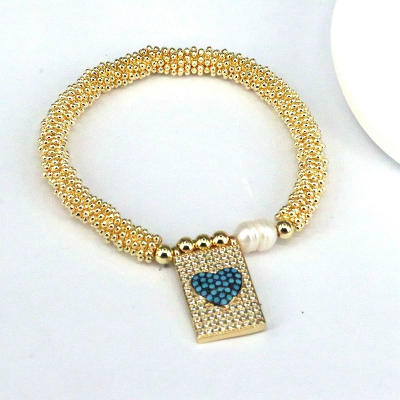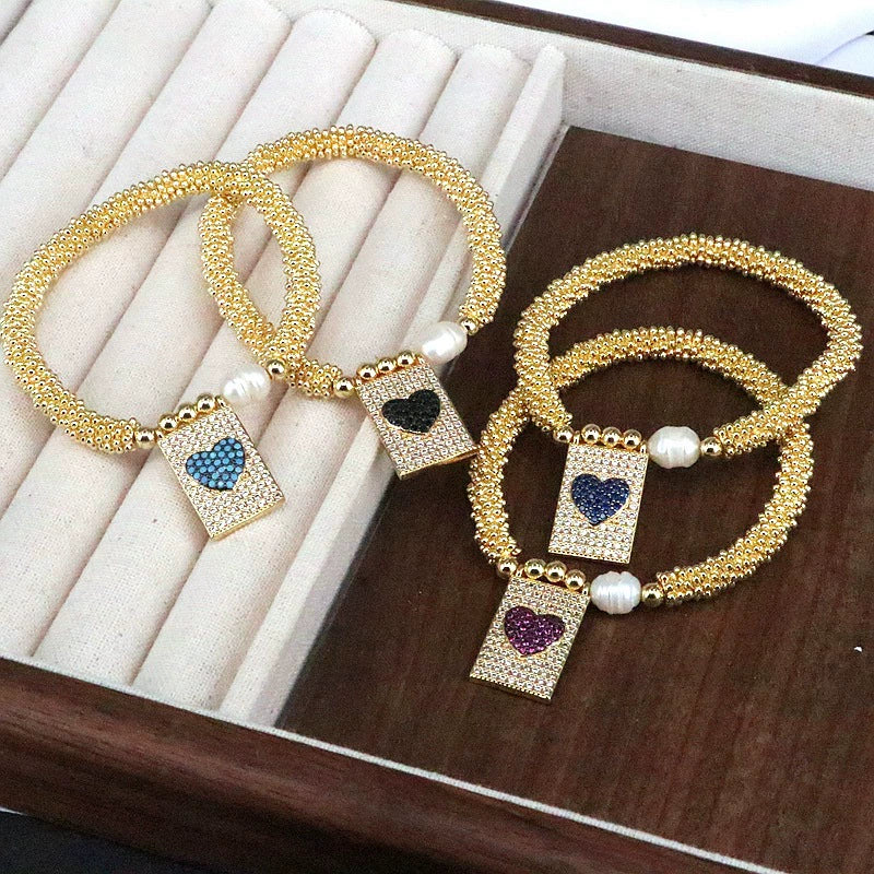 Bracelet Metal Heart Shaped Microinlay Love Rectangular Zirconium Beaded Unisex And Women's