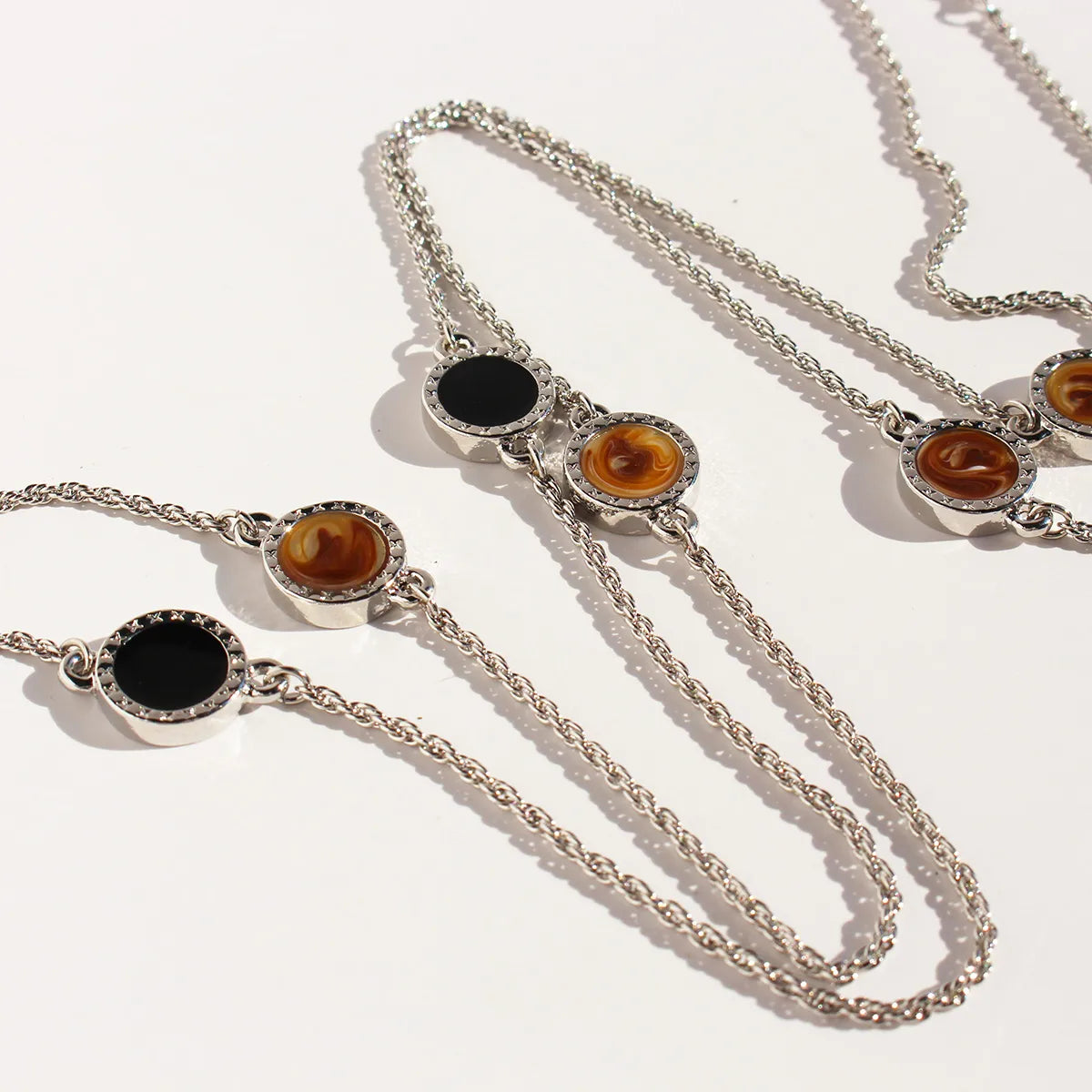 Enamel Copper 24K Gold Plated Round Sweater Chain Necklace
