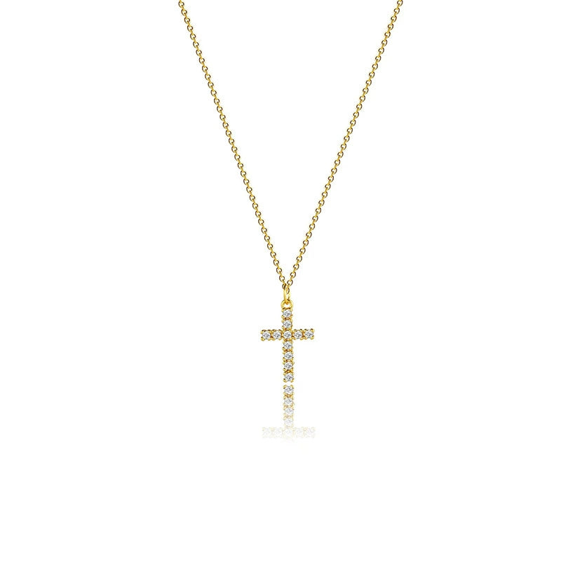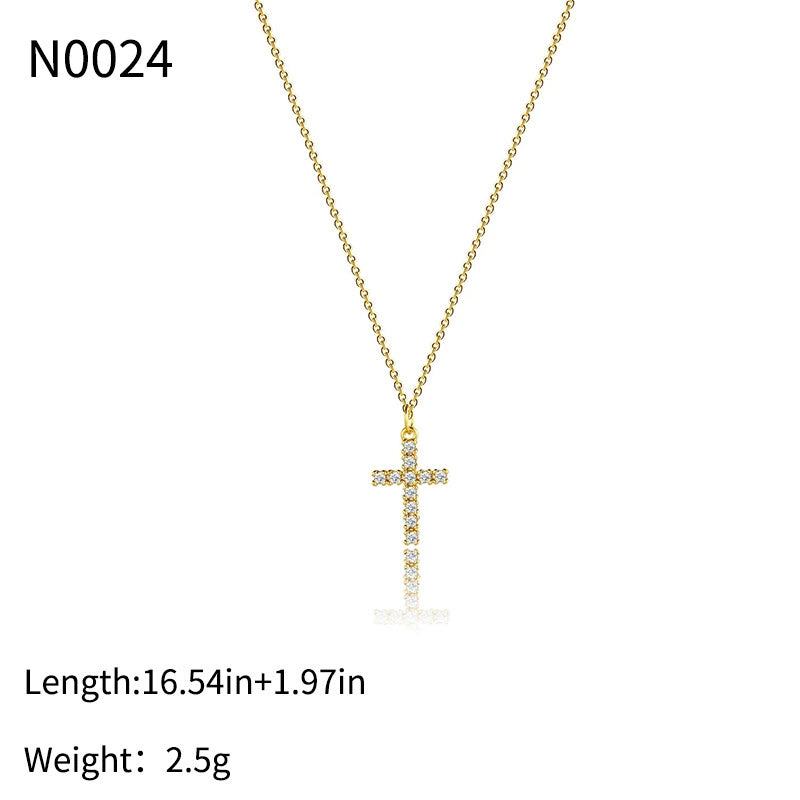 Fashion Allmatch Jewelry Exquisite Copper Set With Zircon Cross Necklace For Women Geometric Style Copper Plated With Real Gold Electroplating Treatment
