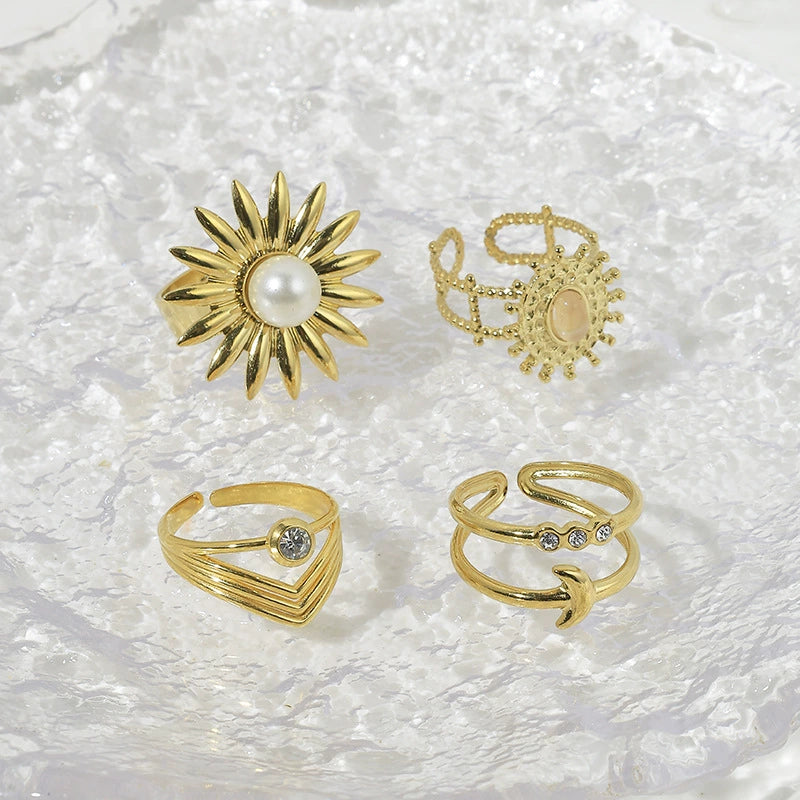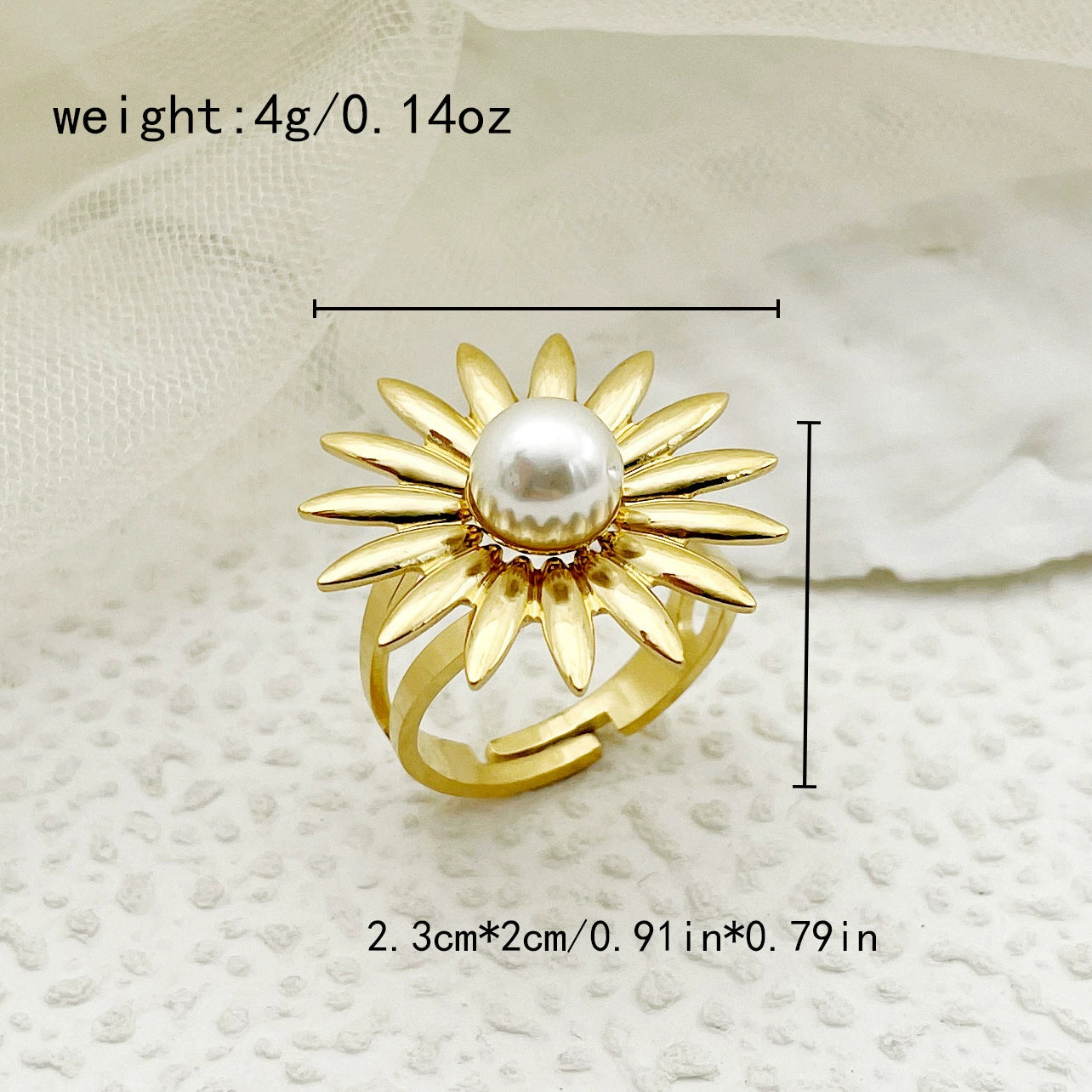 Fashion Commuter Exquisite Flower Pearl Opening Stainless Steel Ring With Electroplating
