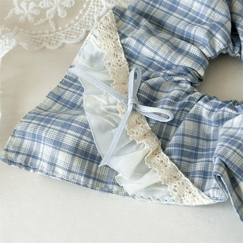 Hair Tie Rope Fabric Handmade Blue Check Bow Large Intestine Style
