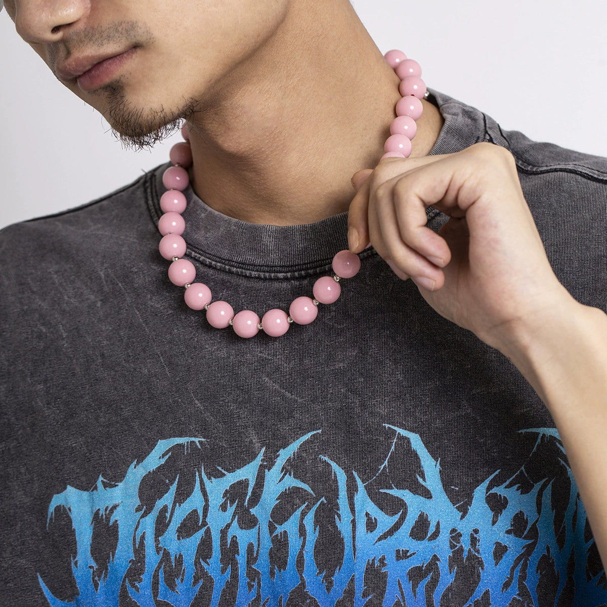 Men's Acrylic Beaded Geometric Clavicle Chain Necklace