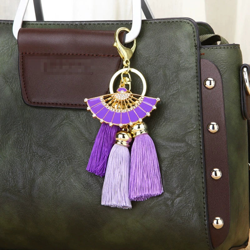 Metal Fan Tassel Keychain For Women Creative Bag Pendant