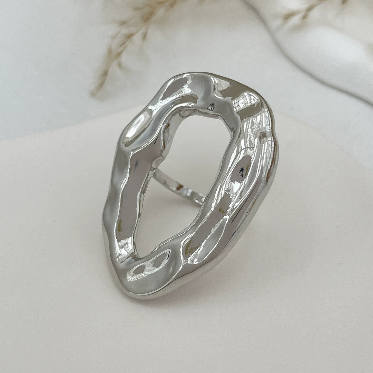Metal Geometric Hollow Ring Electroplated For Women