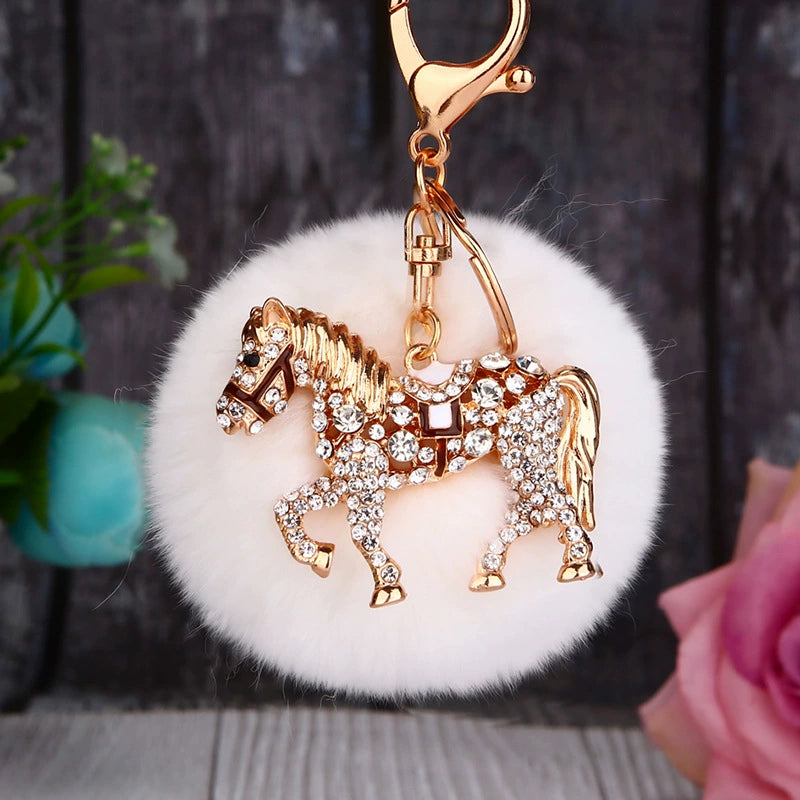 Metal Rhinestone Pumpkin Car Keychain Cute Creative Bag Pendant Female Plush Gift