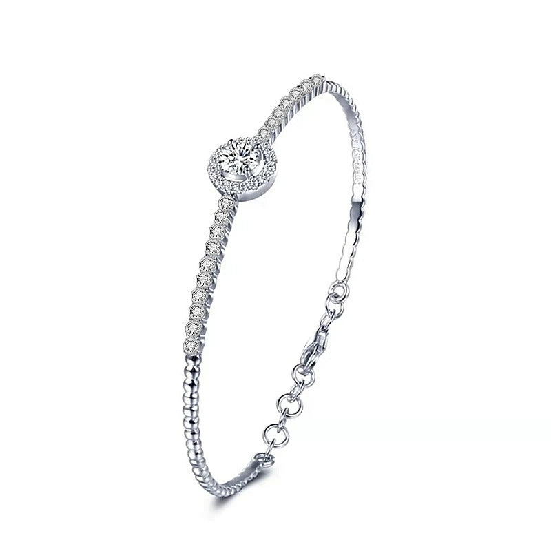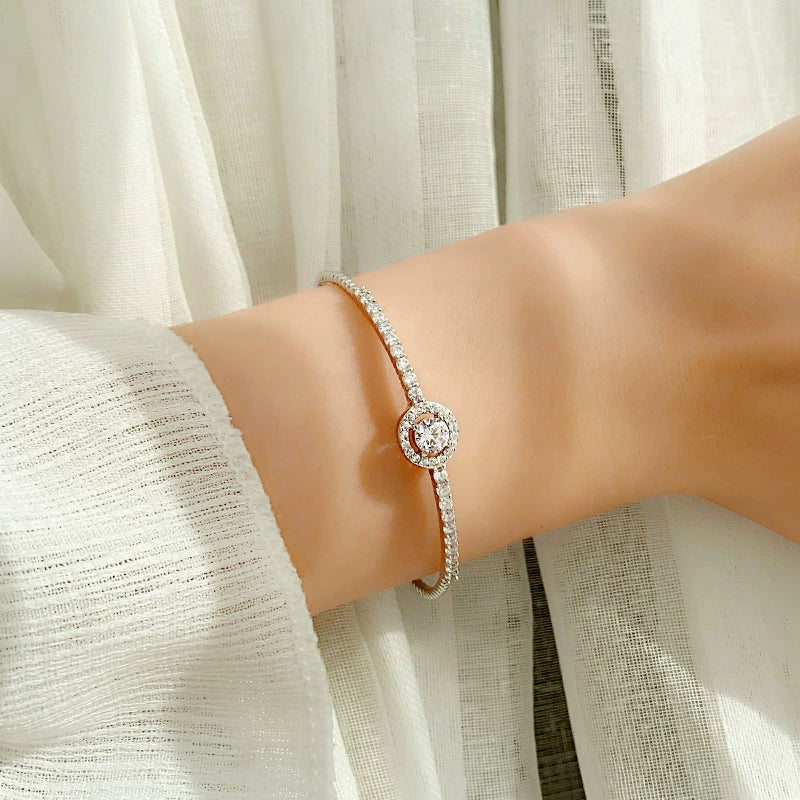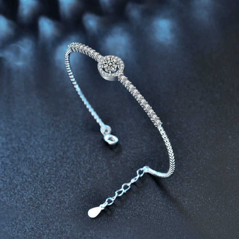 Moissanite 925 Sterling Silver Light Luxury Geometric Bracelet Set With Diamonds