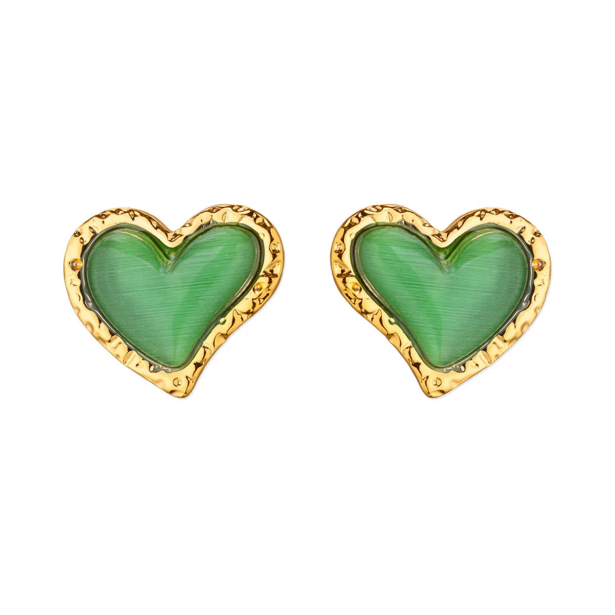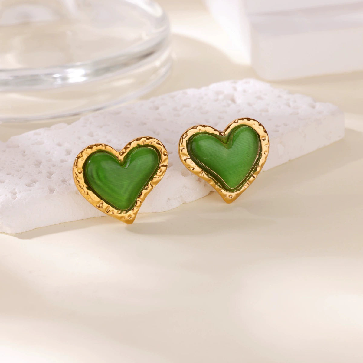 Natural Stone Stainless Steel Heartshaped Geometric Earrings With Electroplating For Women