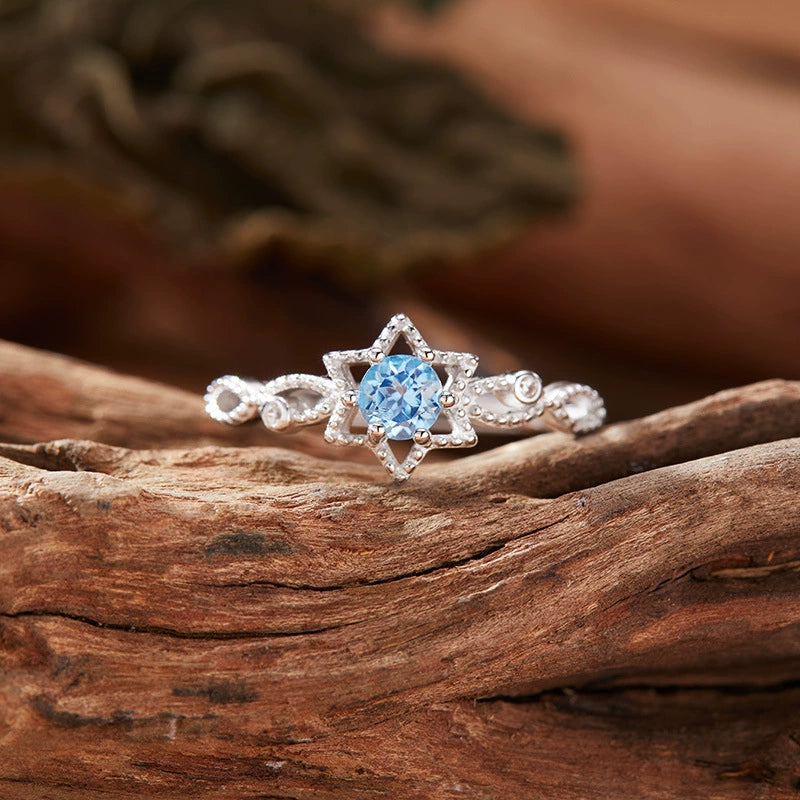 Ring S925 Sterling Silver Natural Amethyst Citrine Hexagonal Star Hollow Women's Sweet Style Set With Gemstones