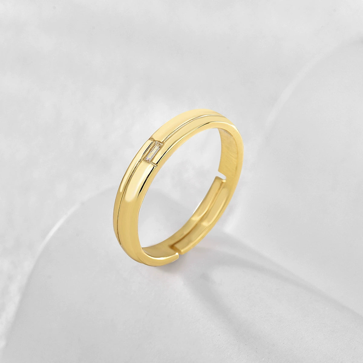 Simple Goldplated Women's Diamond Ring Copper Geometric Style