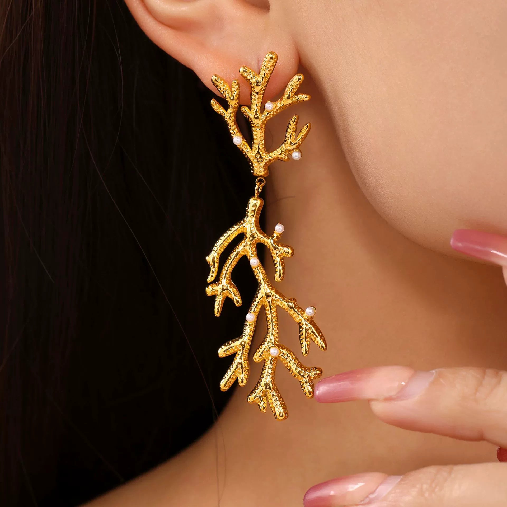Stainless Steel Bead Textured Coral Geometric Light Luxury Electroplated Women's Ear Studs Earrings