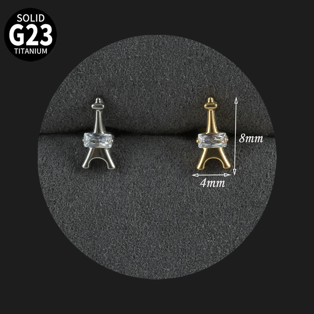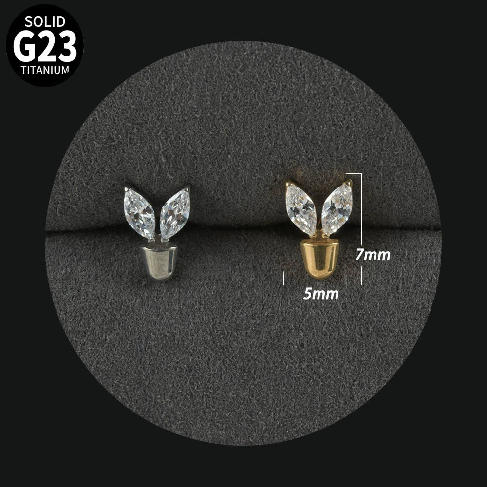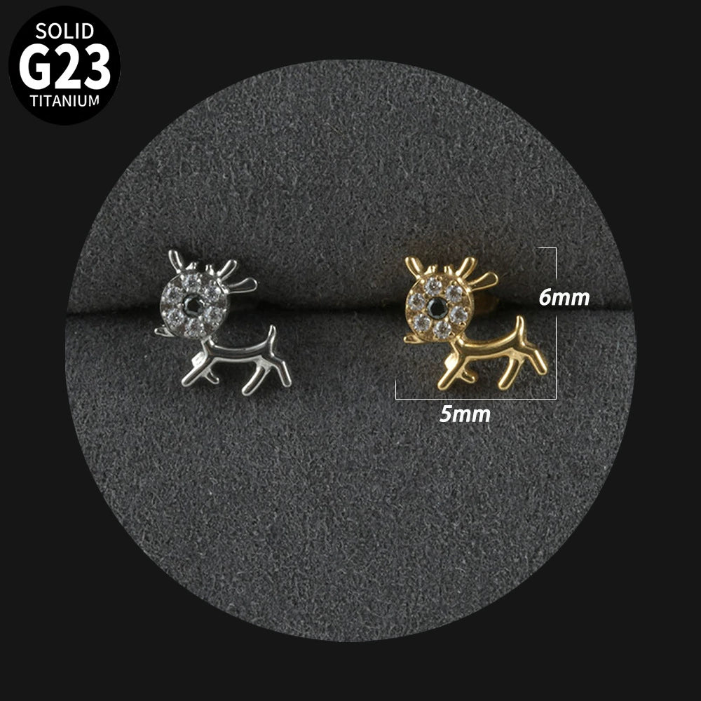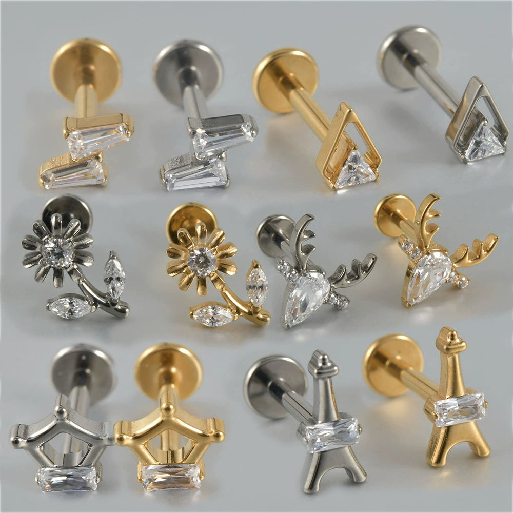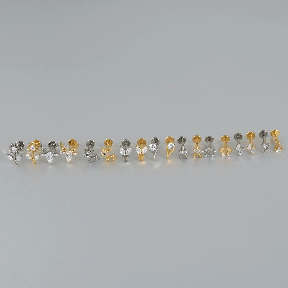 Titanium Alloy Inner Tooth Lip Nail Sunflower Deer Horn Zircon Lip Ring Tshaped Flat Bottom Ear Bone Nail Jewelry Electroplated