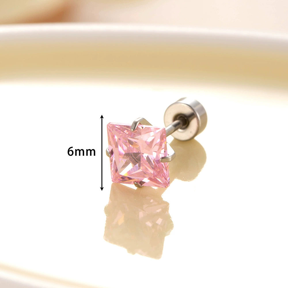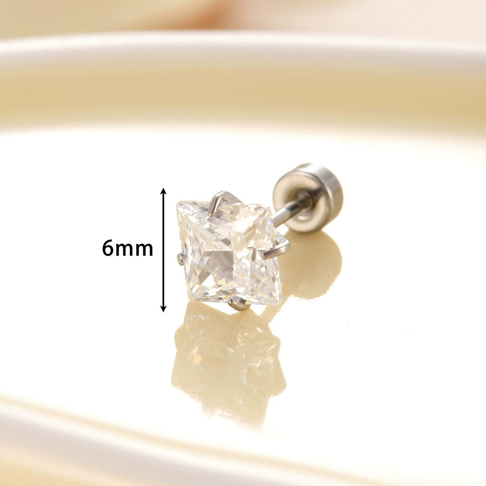 Titanium Steel Earrings With Square Zircon Inlaid Geometric Sweet Girly Style