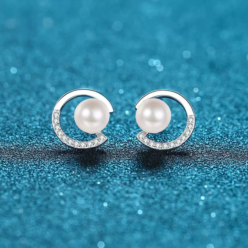 Wholesale 925 Sterling Silver Earrings With Fresh Water Pearl And Moissanite Geometric Style Electroplated