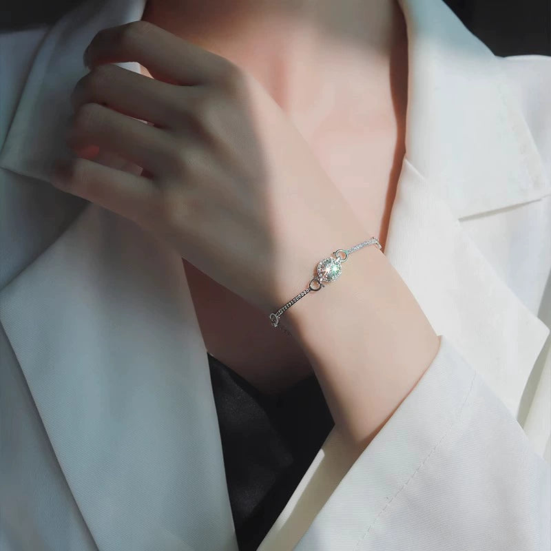 Wholesale 925 Sterling Silver Moissanite Simple Round Women's Bracelet Seiko Light Luxury Geometric Style