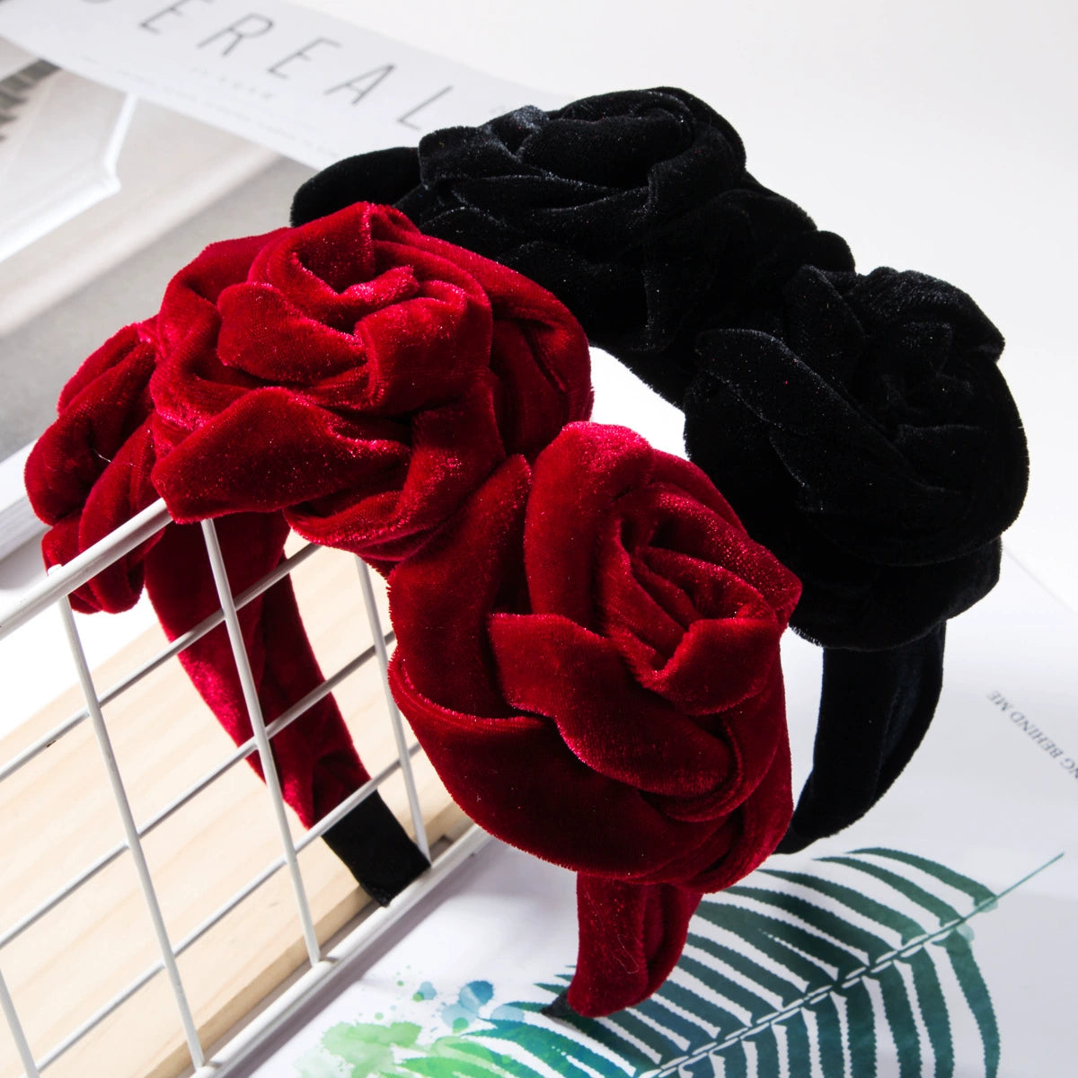 Wholesale Hairband Gold Velvet Multi Layer Flower Simple Style