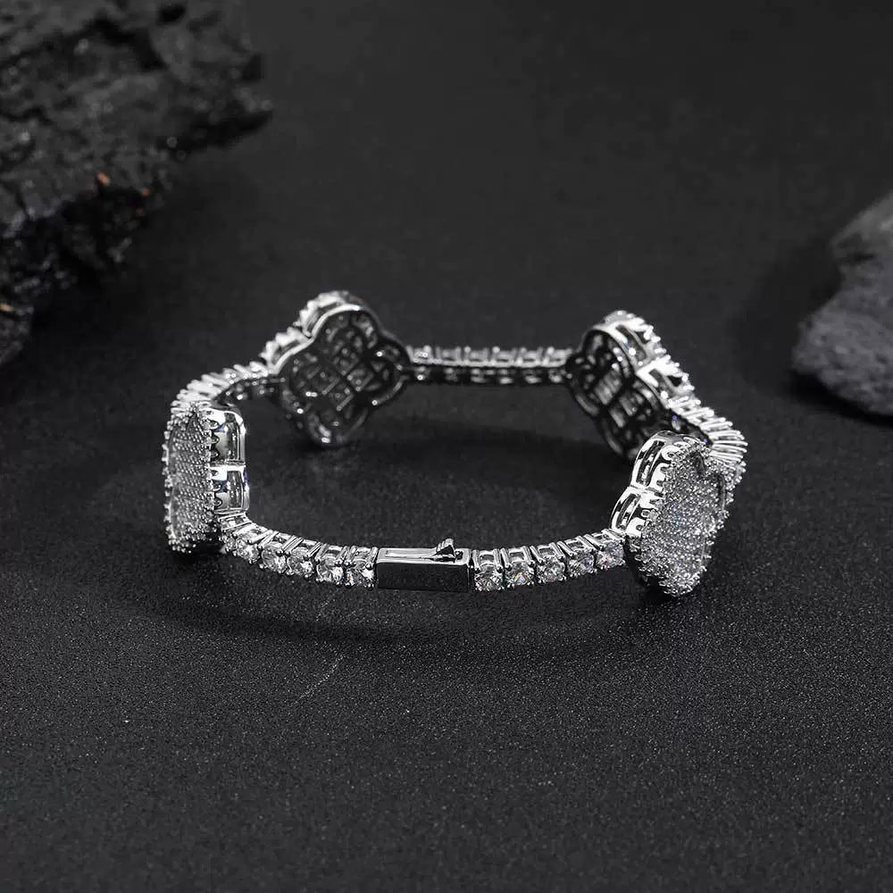 Wholesale Hip Hop Copper Zircon Geometric Fourleaf Clover Spring Buckle Tennis Bracelet Unisex Jewelry