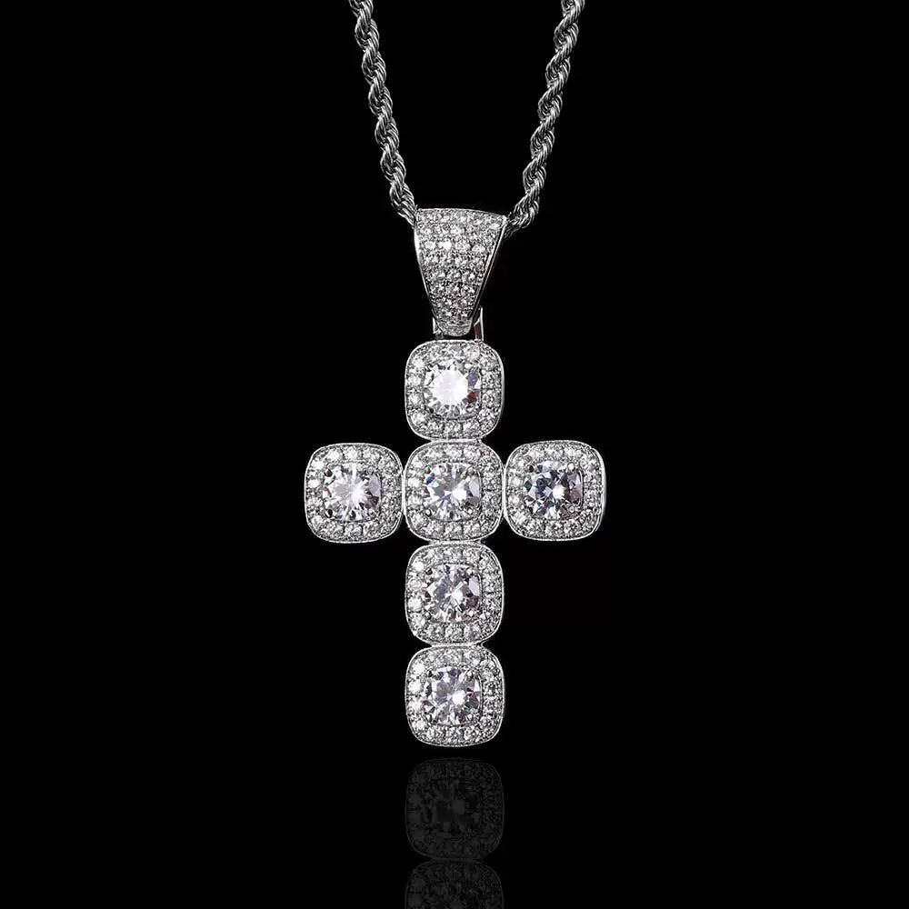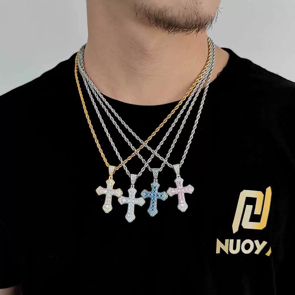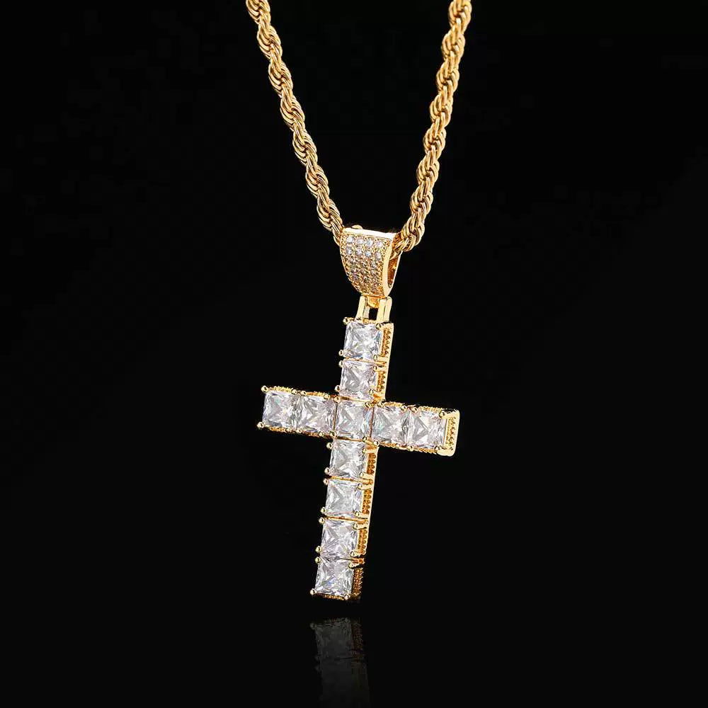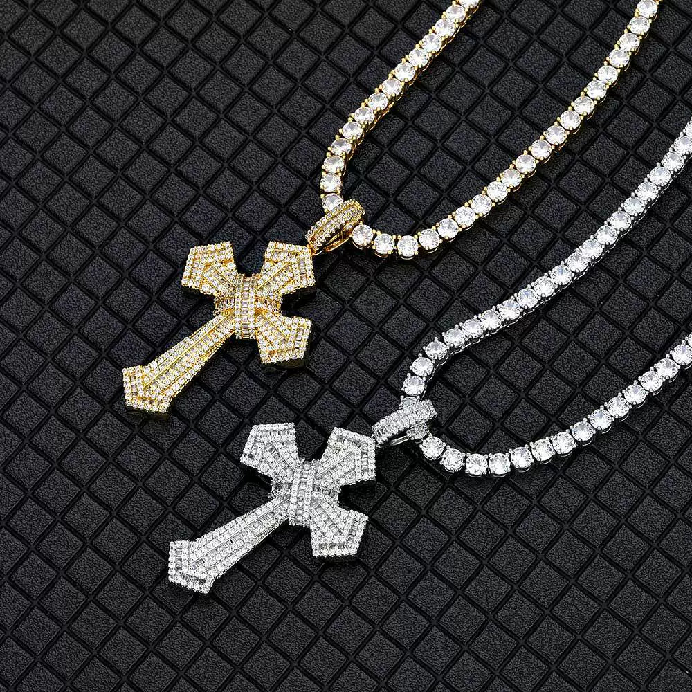 Wholesale Hiphop Cross Copper Zircon Pendant Necklace