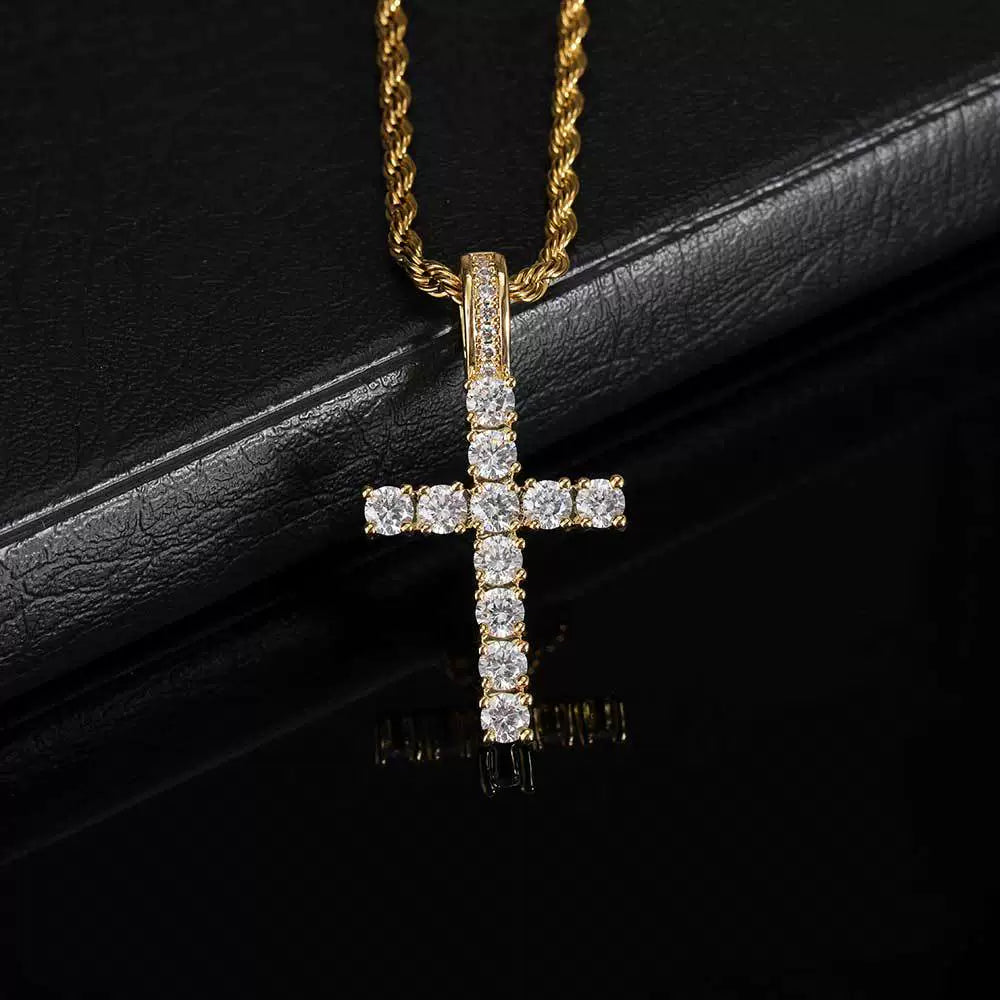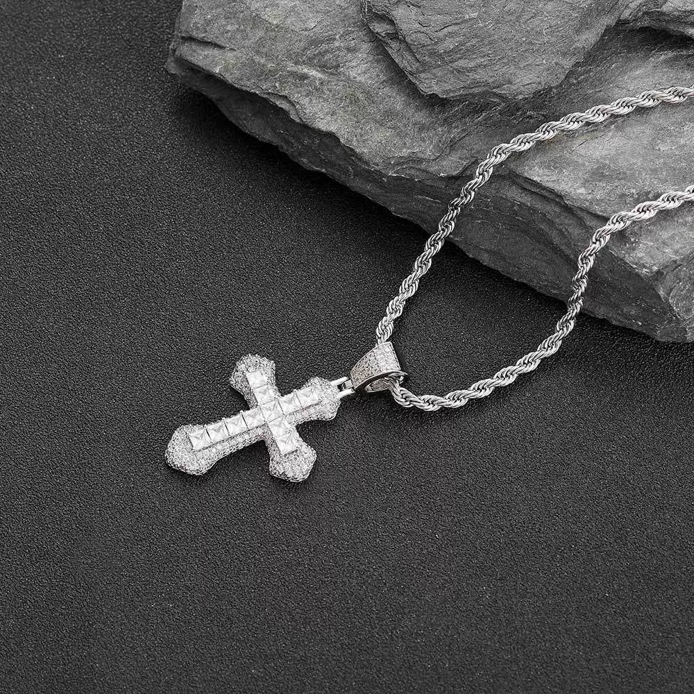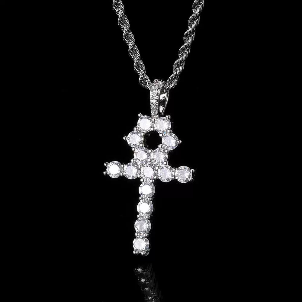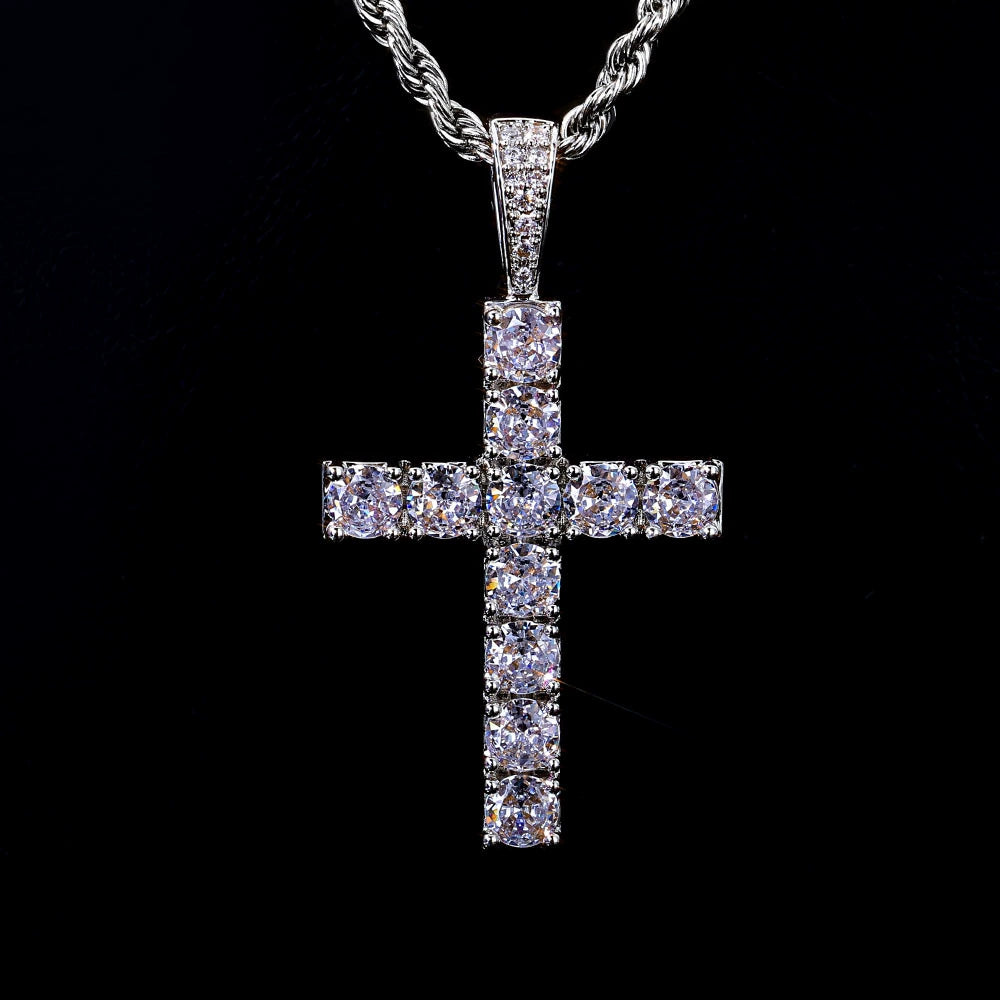 Wholesale Hiphop Cross Copper Zircon Pendant Necklace