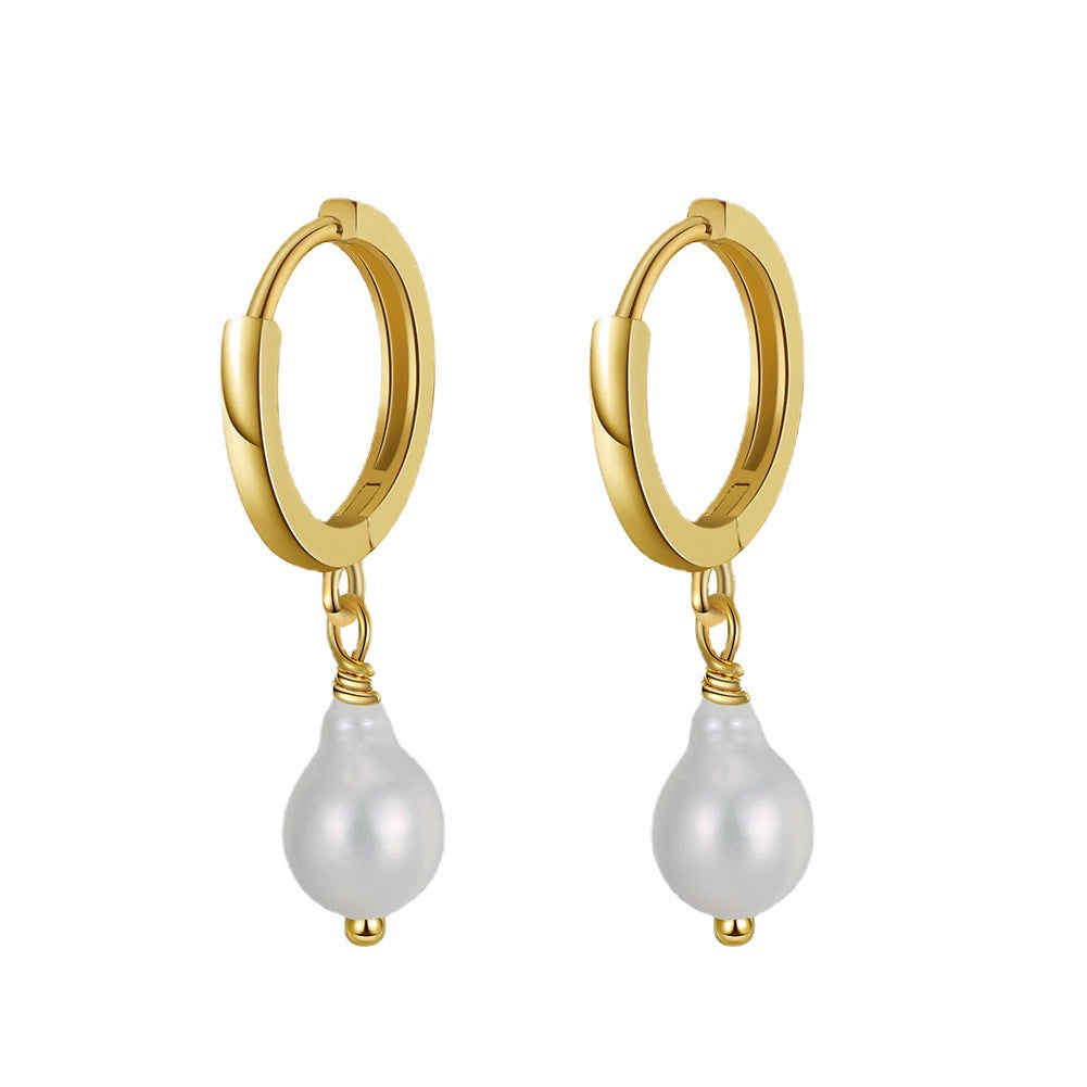 Wholesale Jewelry 925 Sterling Silver Natural Freshwater Pearl Baroque Pipa Beads Earrings Electroplated Geometric Style