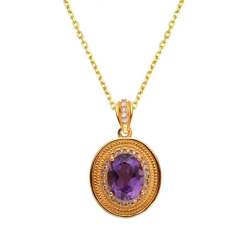Wholesale Jewelry Natural Amethyst Women's S925 Sterling Silver Pendant Geometric French Retro Court Style Set With Gems