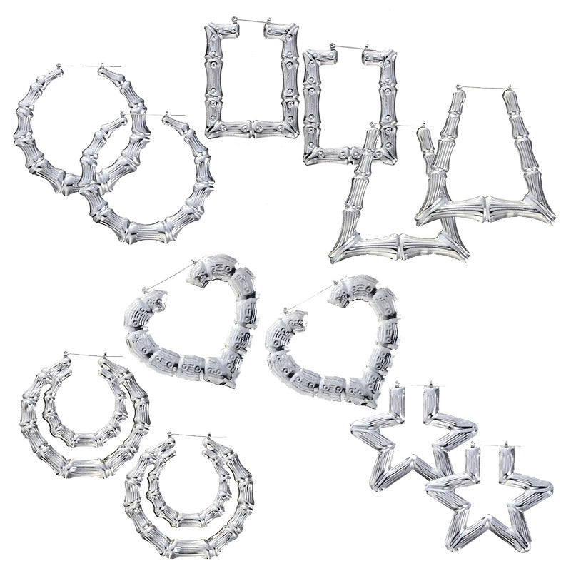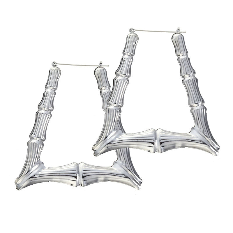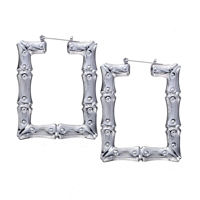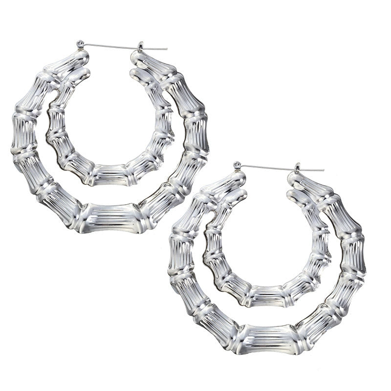 Wholesale Metal Bamboo Big Circle Geometric Hiphop Style Electroplated Unisex Earrings