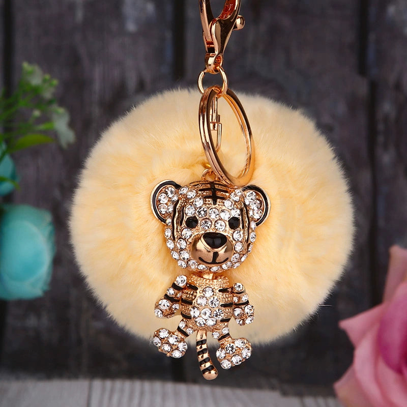 Wholesale Metal Creative Rhinestone Tiger Car Keychain And Bag Pendant