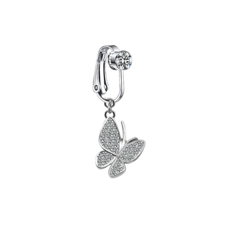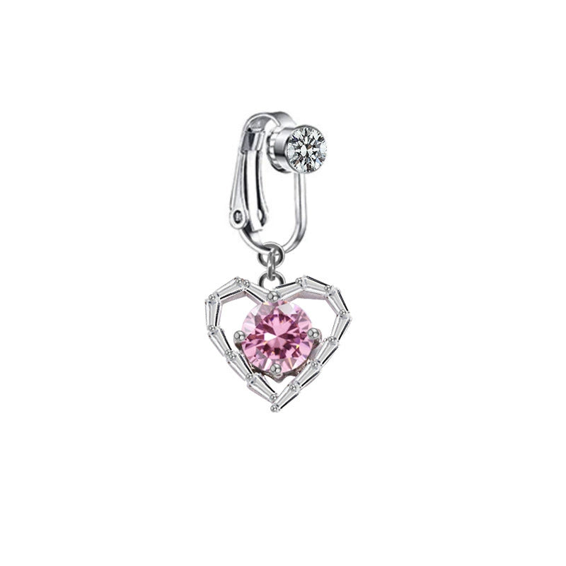 Wholesale Navel Clip Ear Clip Jewelry Stainless Steel Heart Shape Diamond Alloy Inlaid Artificial Gem Semiprecious Stone Unisex