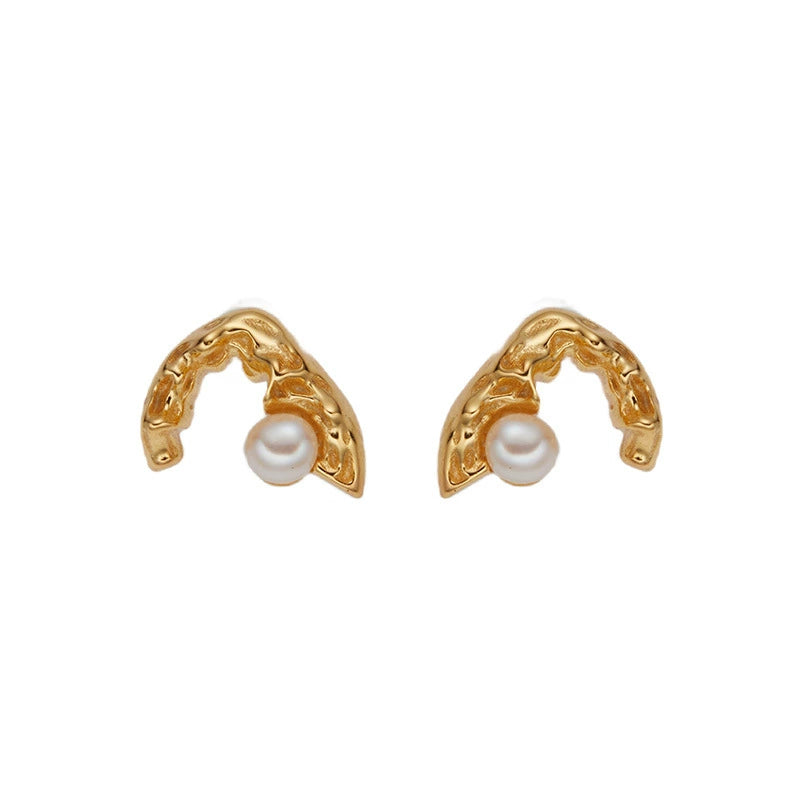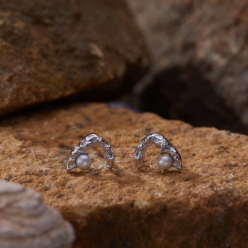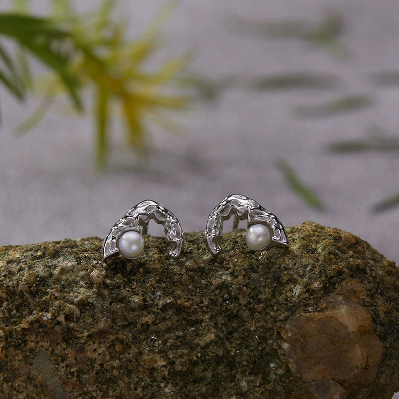 Wholesale S925 Sterling Silver Natural Pearl Geometric Landscape Art Stud Earrings Set With Gems