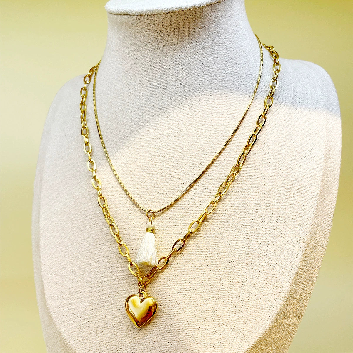 Wholesale Stainless Steel Heart Shape Stacking Style Pendant Necklace With 18K Goldplated Electroplating For Women