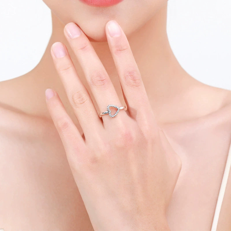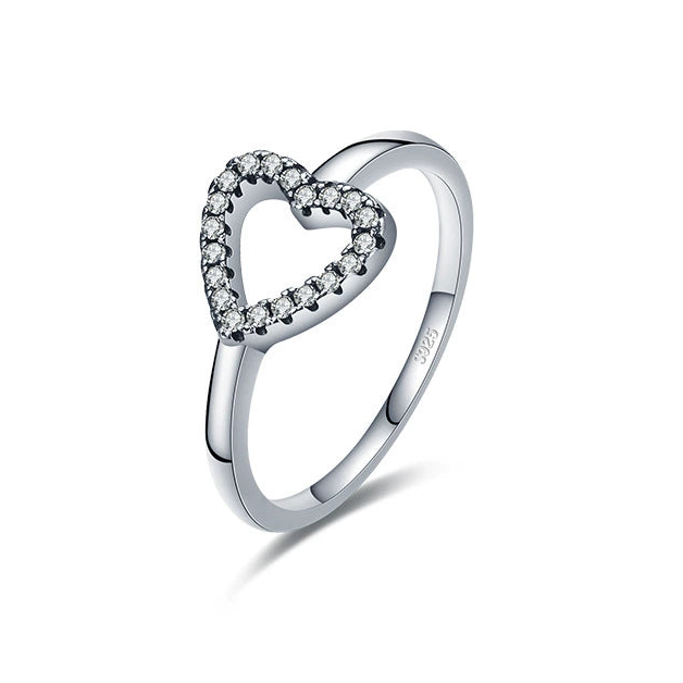 Wholesale Women's 925 Silver Vintage Heartshaped Ring With Diamond