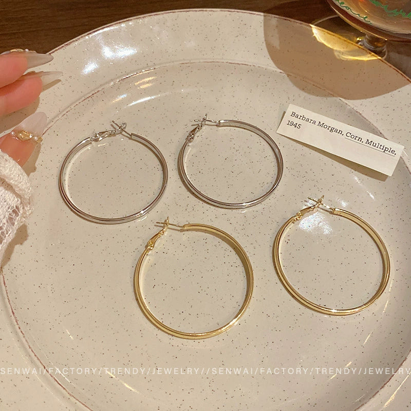 Wholesale Women's Alloy Geometric Round Plain Hoop Earrings With Electroplating