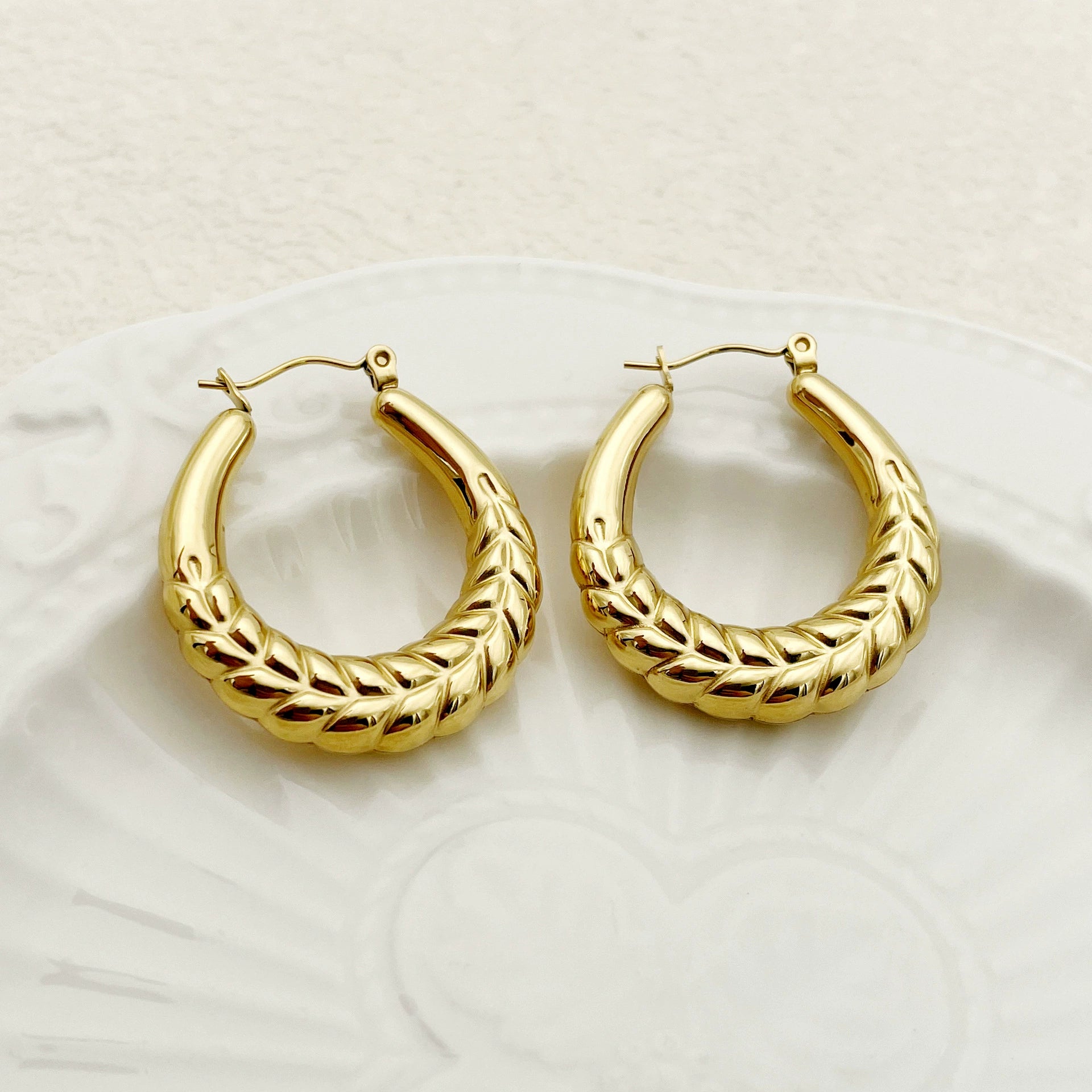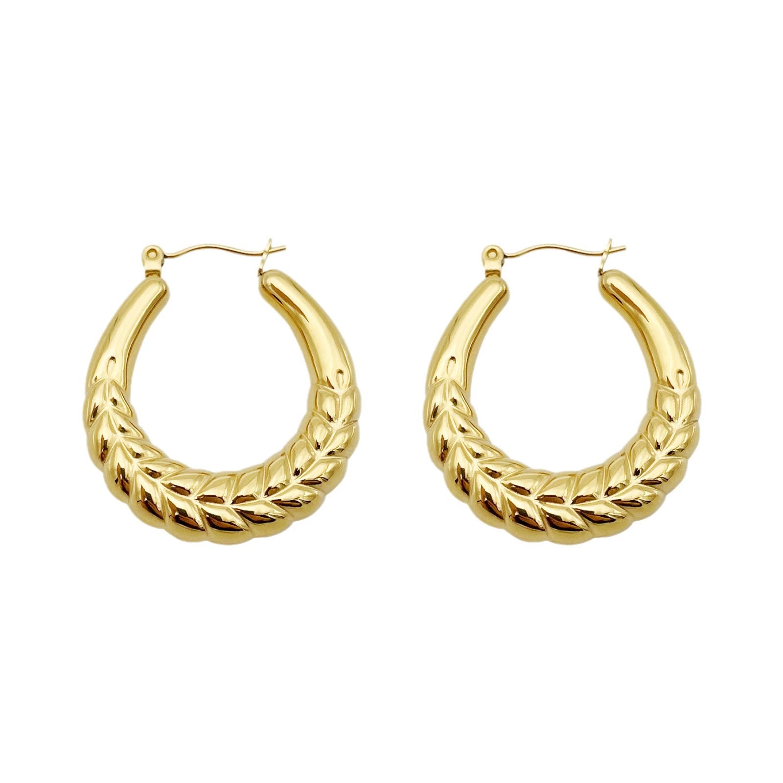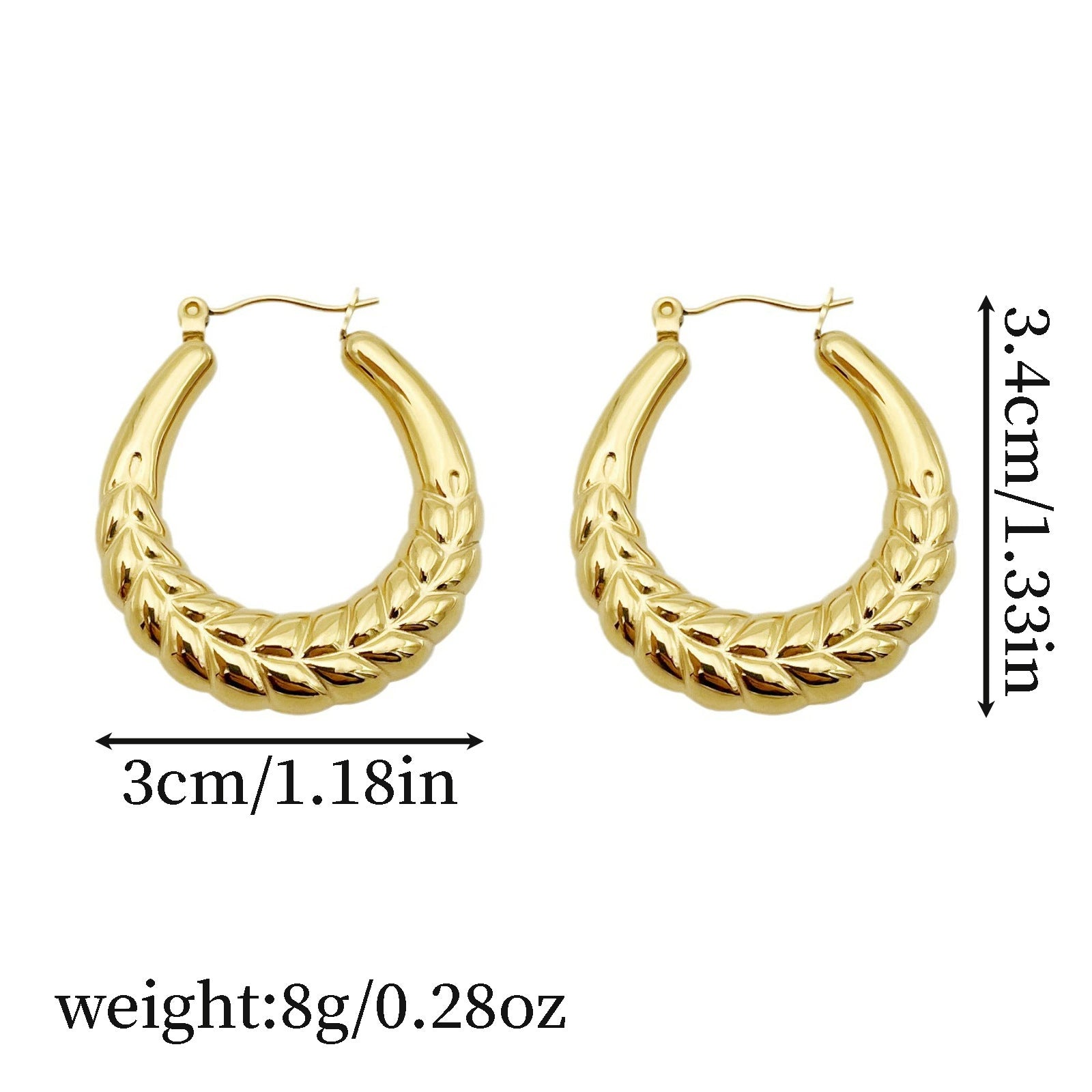 Wholesale Women's Elegant Wheat Ear Hoop Earrings Stainless Steel 18K Goldplated Geometric Ushaped Plants And Flowers Style
